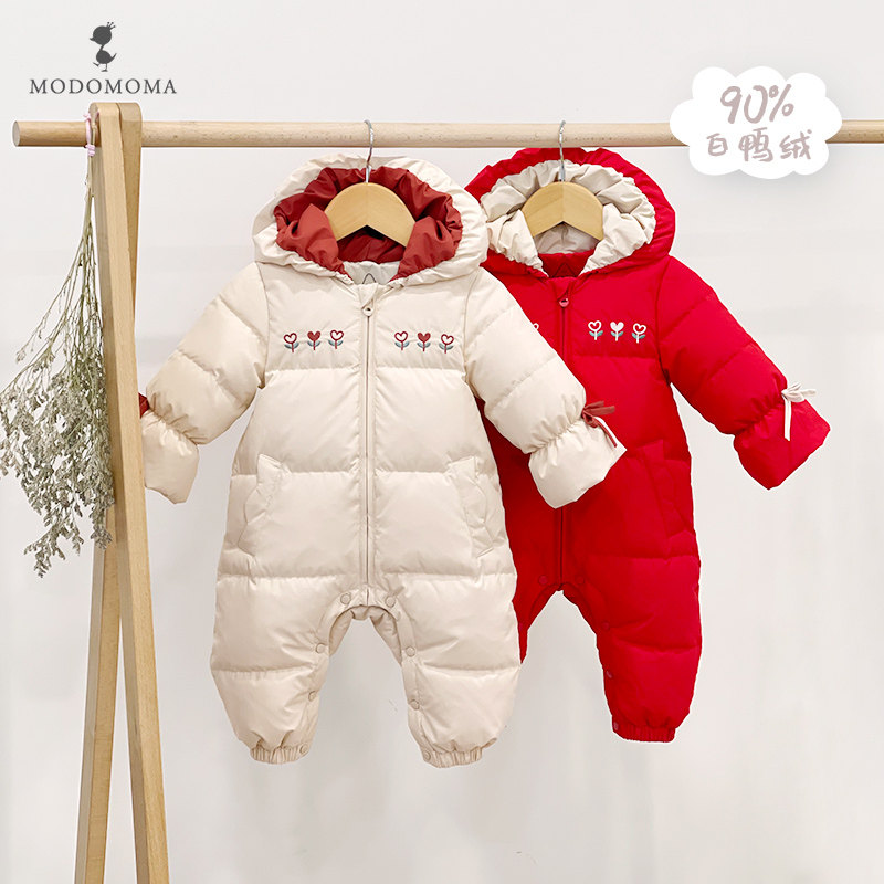 modomoma Зимний комбинезон для новорожденных для младенца подходит для мужчин и женщин для девочек, бархатная удерживающая тепло толстовка с капюшоном, пуховик, утиный пух