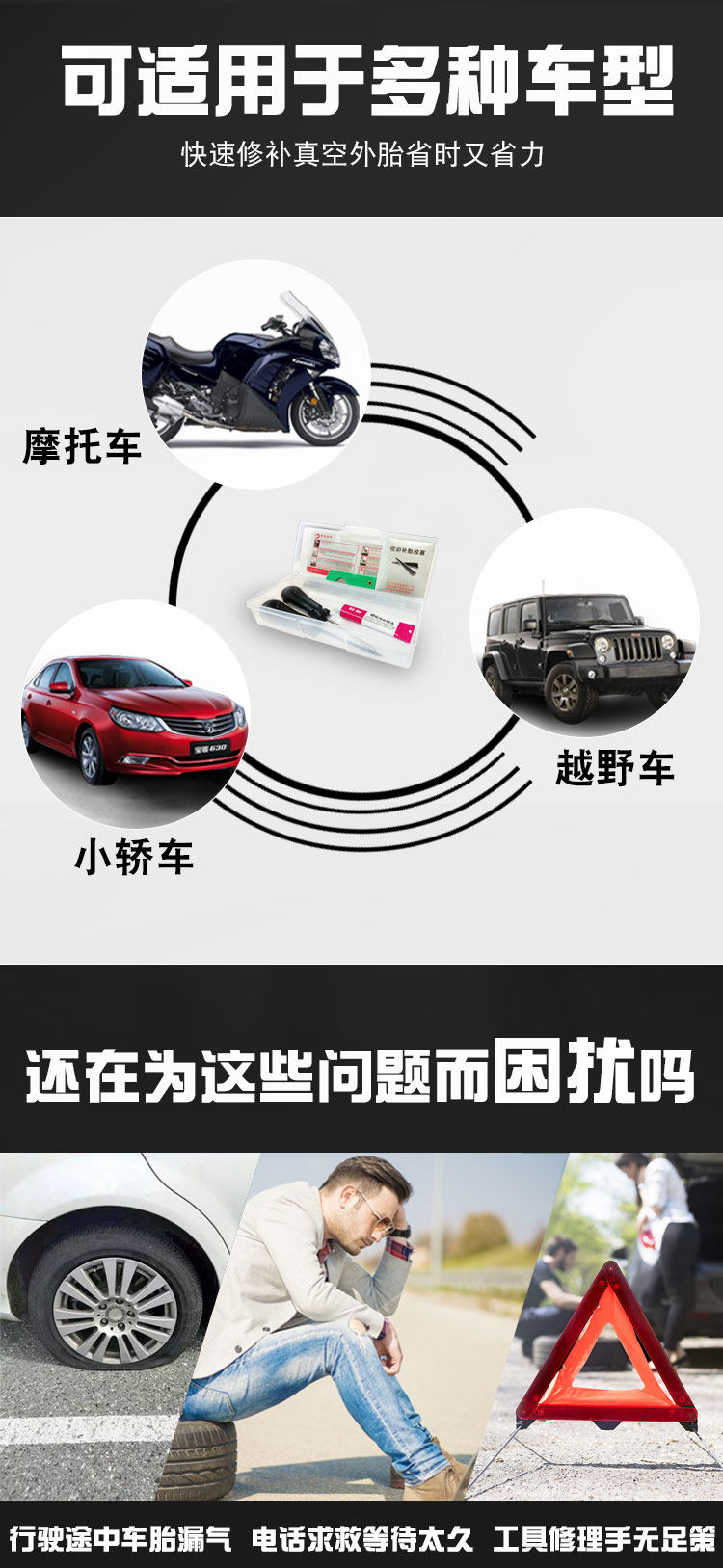Комплект, герметик для шин, стальная проволка, инструмент для ремонта шин, клей, электромобиль