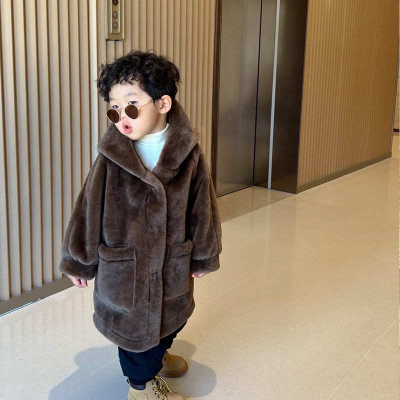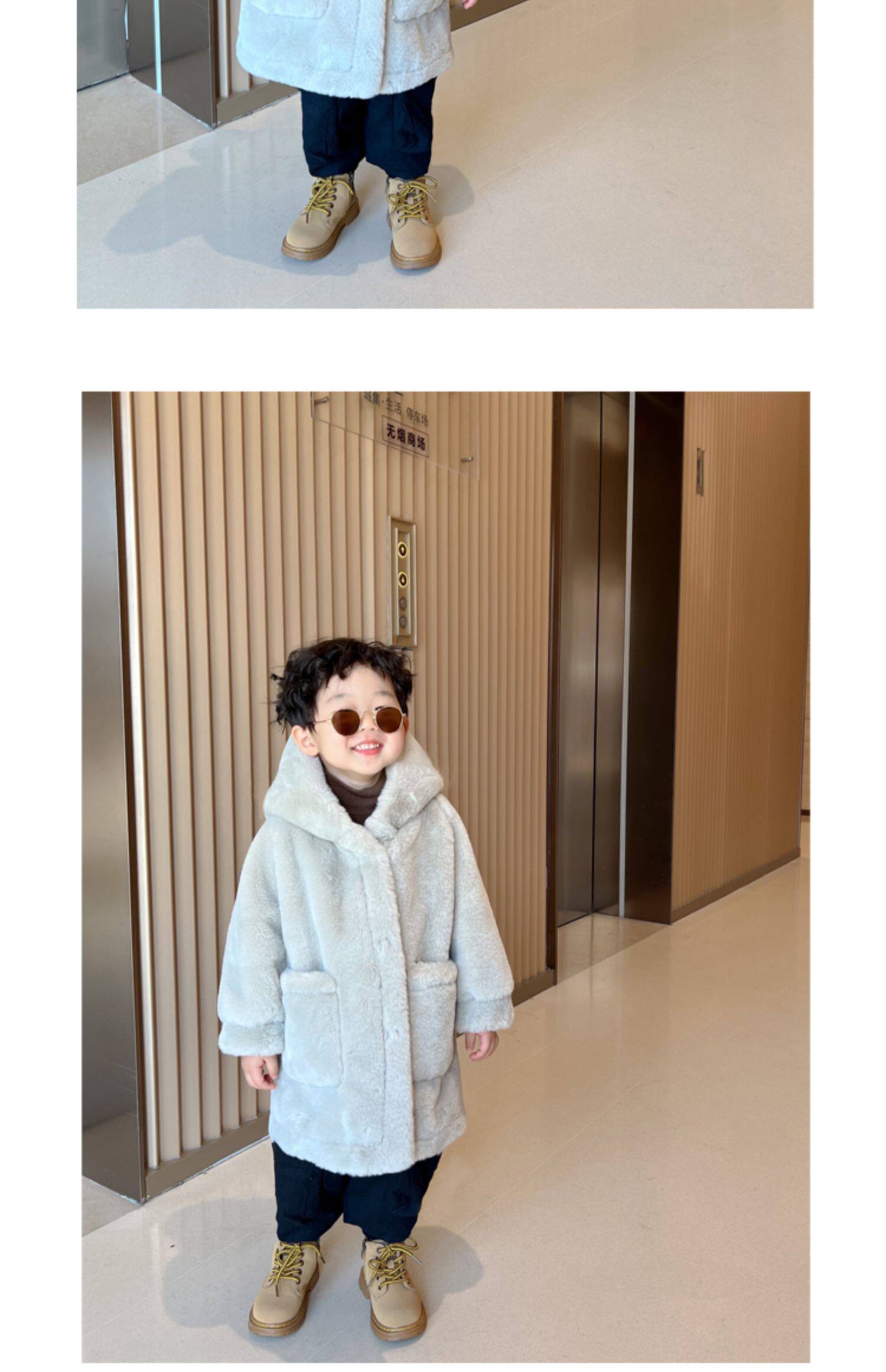 Детская куртка для мальчиков, длинная толстовка с капюшоном, бархатный свитер, средней длины