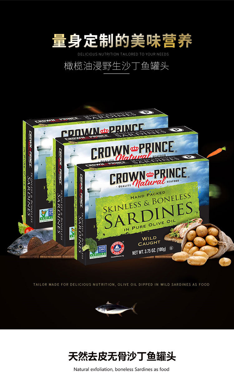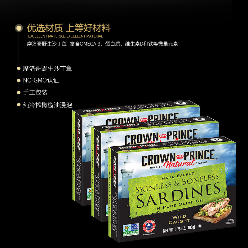 Сардины с диким маслом в импортированных консервированных рыбах 106G*3 коробки