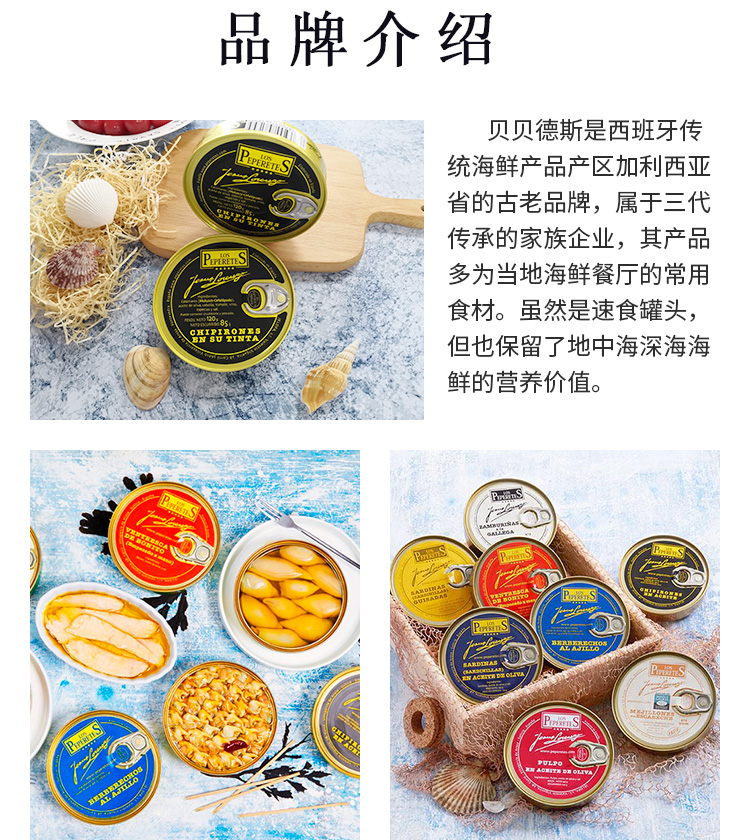 Испанский импортирован Bepeds Ink Squid 120 г мгновенные рыбы консервированные консервированные морепродукты