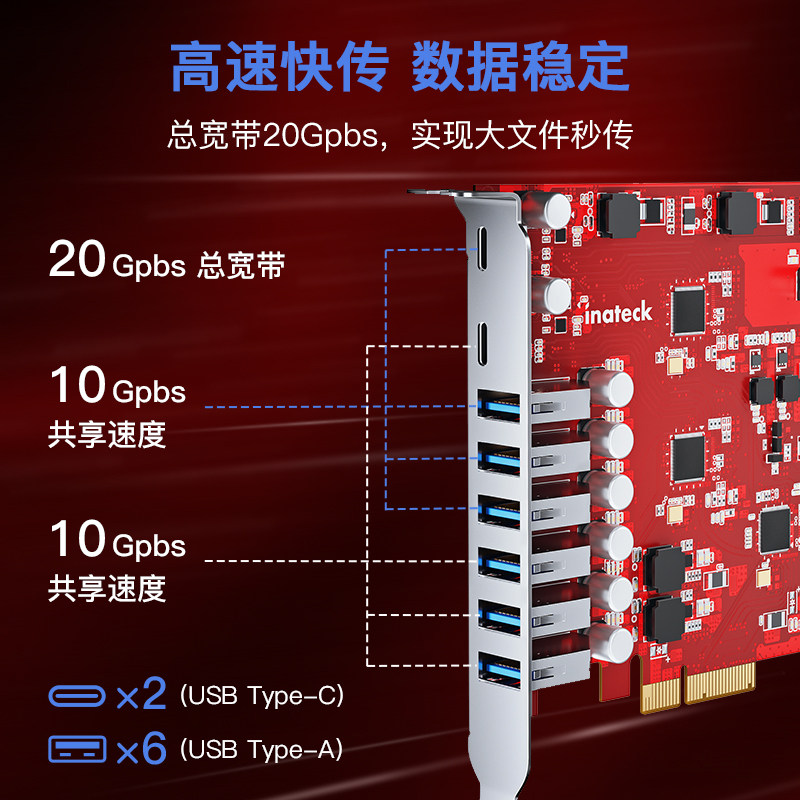 Inateck расширение карта PCIe восемь -порт до USB3.2Gen2, чтобы подключить TPYEC Free 20 ГБ без источника питания