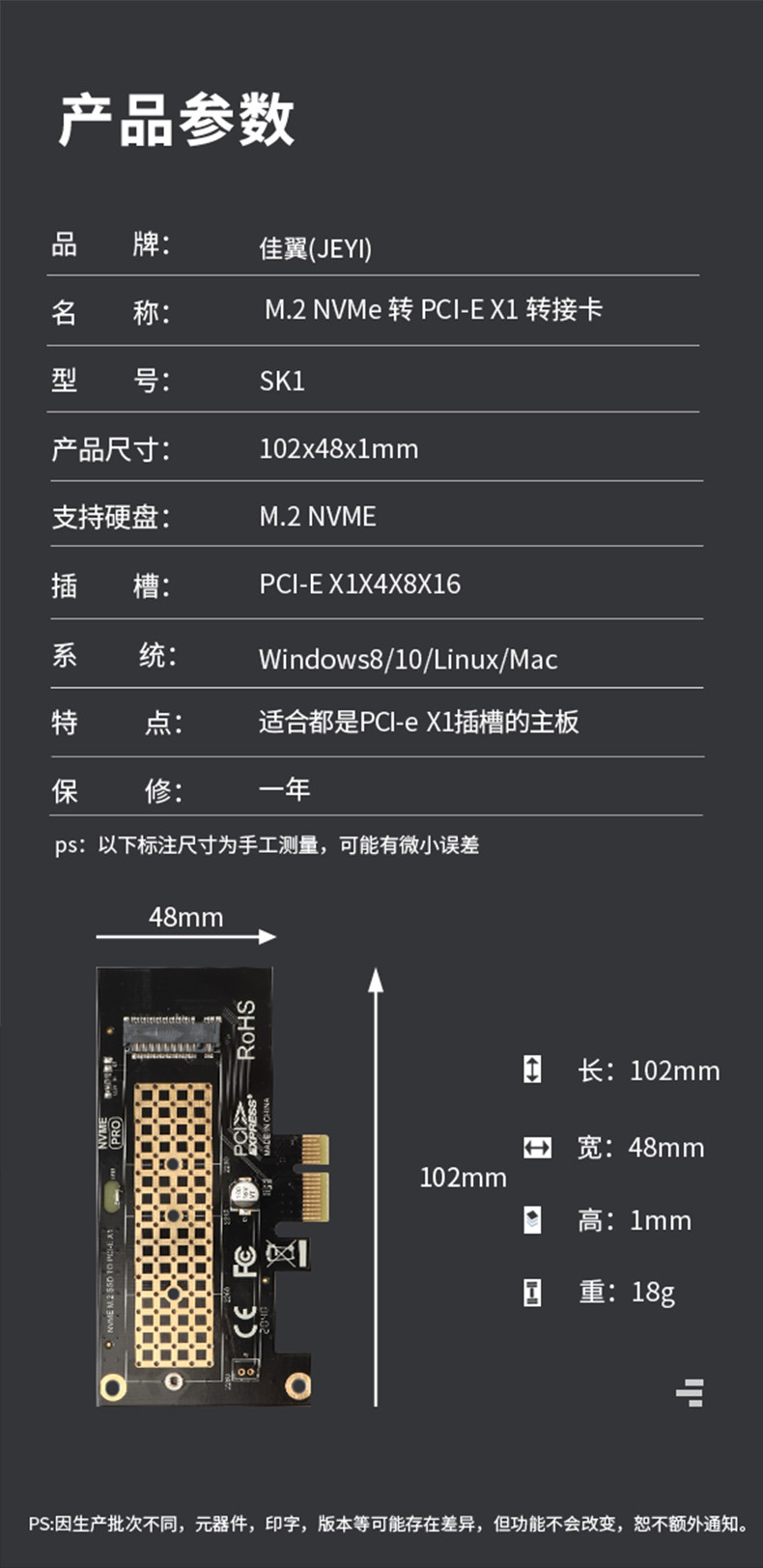 Jiayi SK1 M2 Transfer PCI-E X1 Transfer Card Обновление компьютера Fast DIY Высокоскоростная стабильность
