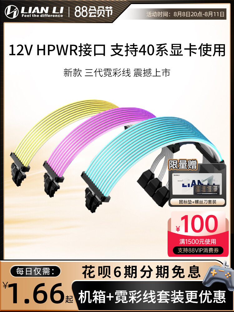 Lianli Three Generations Cai Cai Cai Line 40 -серия графическая карта 12VHPWR Neon Argb Line 3*8PIN до 16PIN