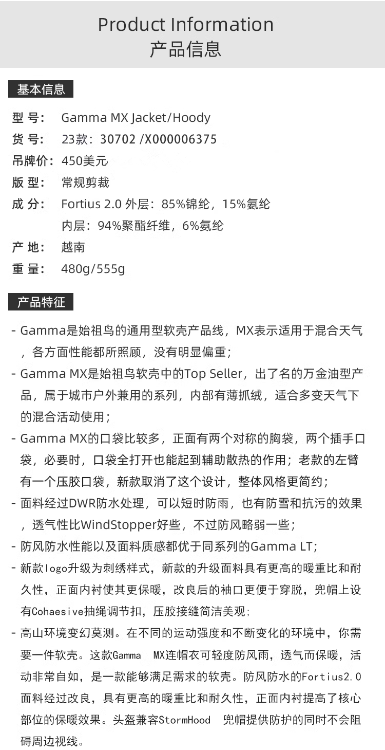Подлинный arcteryx gamma mx hoody x6375 архитектура птицы мужской ветры и теплый полиш мягкая оболочка