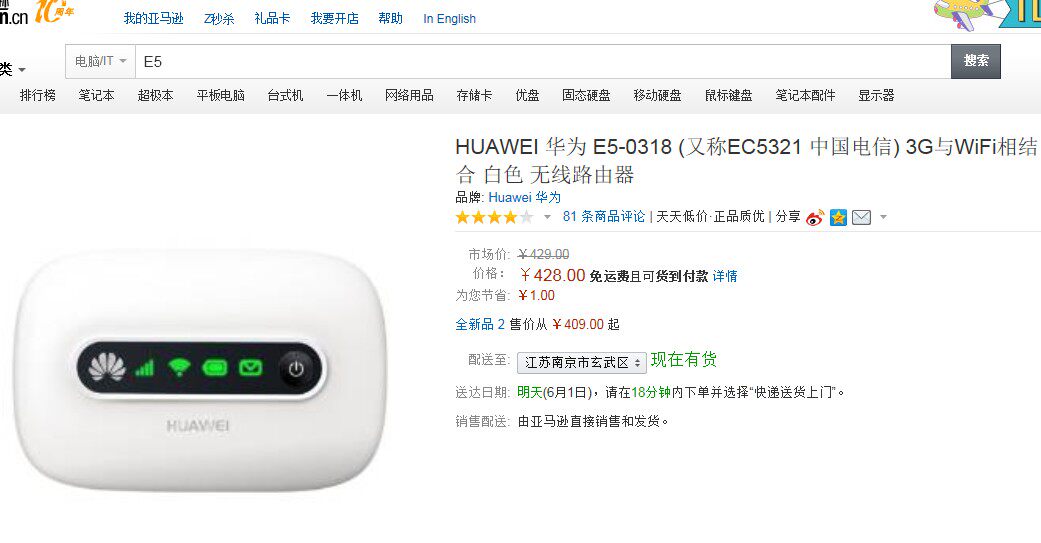 | Цвет: | Huawei E5200C (во второй упаковке нет упаковки), Huawei EC5805 (черный без упаковки), Huawei E5-0318 (новая упаковка), Huawei E5-0318 (нет упаковки вторых рук) |