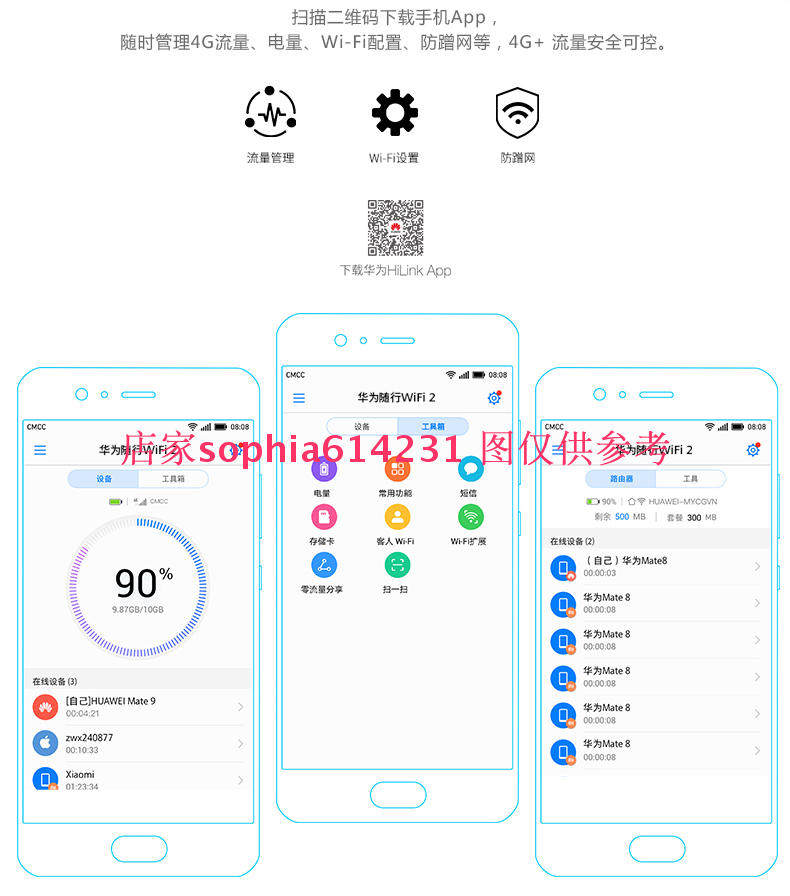 В дополнение к техническому доступу с сенсорным экраном, вы также можете подключиться через интерфейс USB, и вы можете получить его через IP -адрес 192.168.8.1.Кроме того, приложение приложения Huawei Hilink также можно использовать для доступа к приложению для мобильных телефонов iOS и Android.Очень практично и легко в работе!