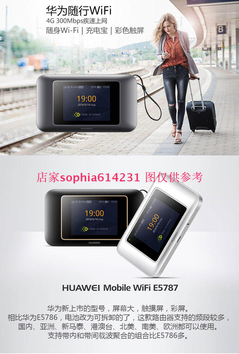 Huawei E5787-первый первой мобильный маршрутизатор Huawei 4G Mi-Fi, который отобразил 2,4-дюймовый сенсорный экран, и он может обеспечить красочную окраску! Очень красиво! E5787 меньше, чем Huawei E5786, но дисплей больше! Все важные функции могут быть. Отображается по умолчанию. Включение времени дисплея (включая дату), трафик данных, информация о беспроводной связи и панели состояния батареи.Доступ к большему количеству функций или настроек может пройти“Провести время”Разблокируйте E5787 слева!