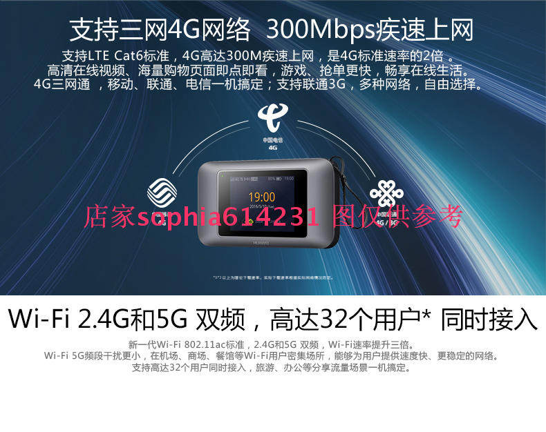 Откройте для себя невероятно быстрый мобильный интернет с использованием технологии агрегации 4G (TD-LTE) CAT6 с модемом Wi-Fi Huaawei E5786.Latest WiFi technology