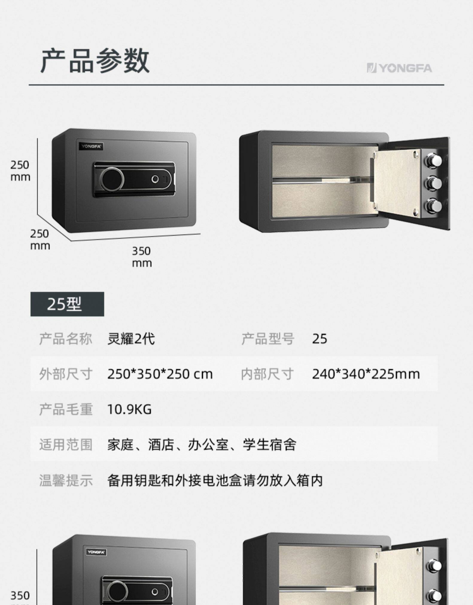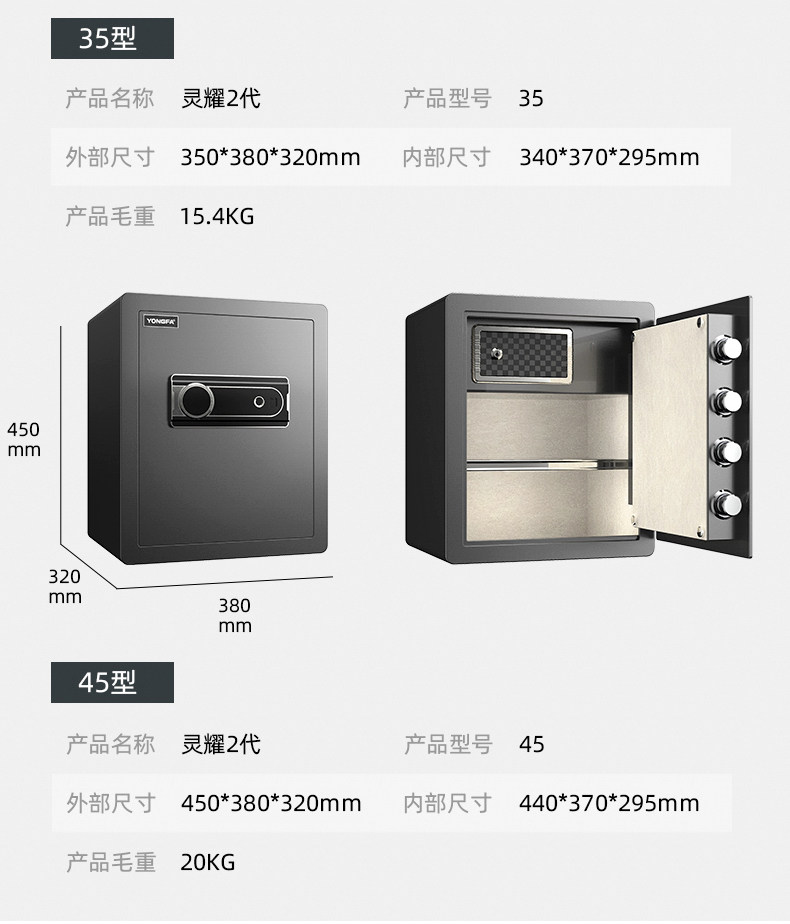 永发 Инсайдерская домохозяйство малая высота 25/35/45/53 см. Отпечаток пальца Puretic Mini Mini Полный стальный антитефтный офисный ящик для хранения