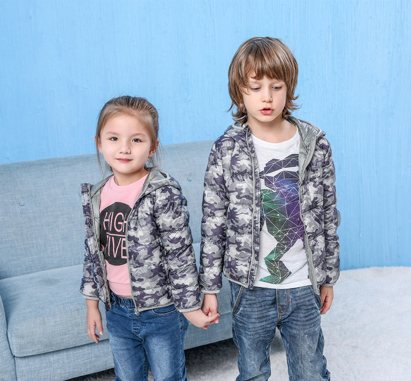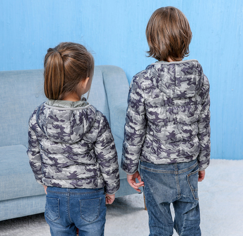 Демисезонный детский легкий и тонкий бархатный сверхлегкий камуфляжный удерживающий тепло пуховик подходит для мужчин и женщин с капюшоном с пухом, утиный пух