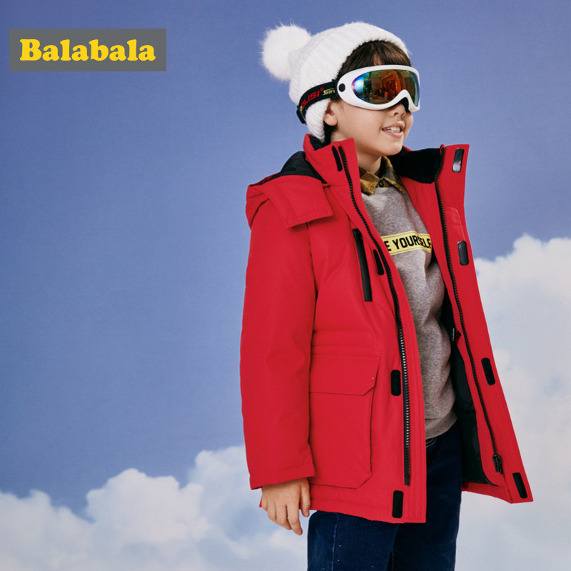 巴拉巴拉 Детский пуховик, костюм мальчика цветочника, демисезонная куртка, длинная толстовка с капюшоном, подходит для подростков, средней длины