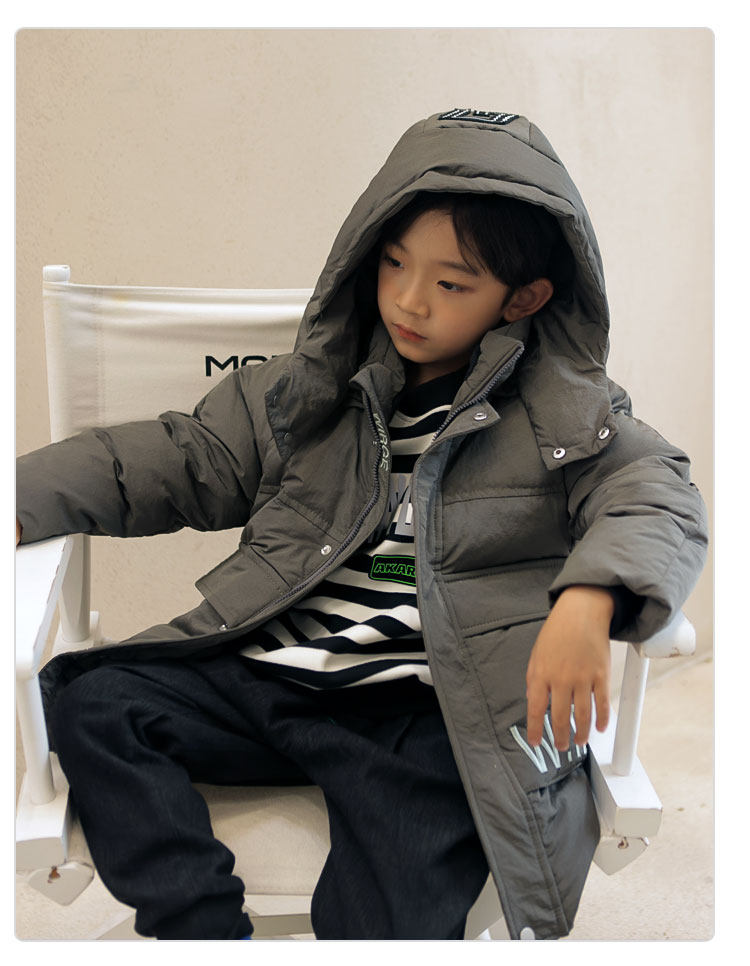Детский пуховик для мальчиков, демисезонная длинная толстовка с капюшоном, увеличенная толщина, подходит для подростков, средней длины
