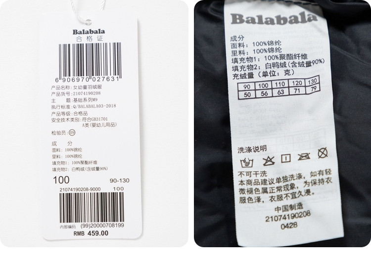 巴拉巴拉 Детский легкий и тонкий длинный пуховик, демисезонная куртка, средней длины, в корейском стиле