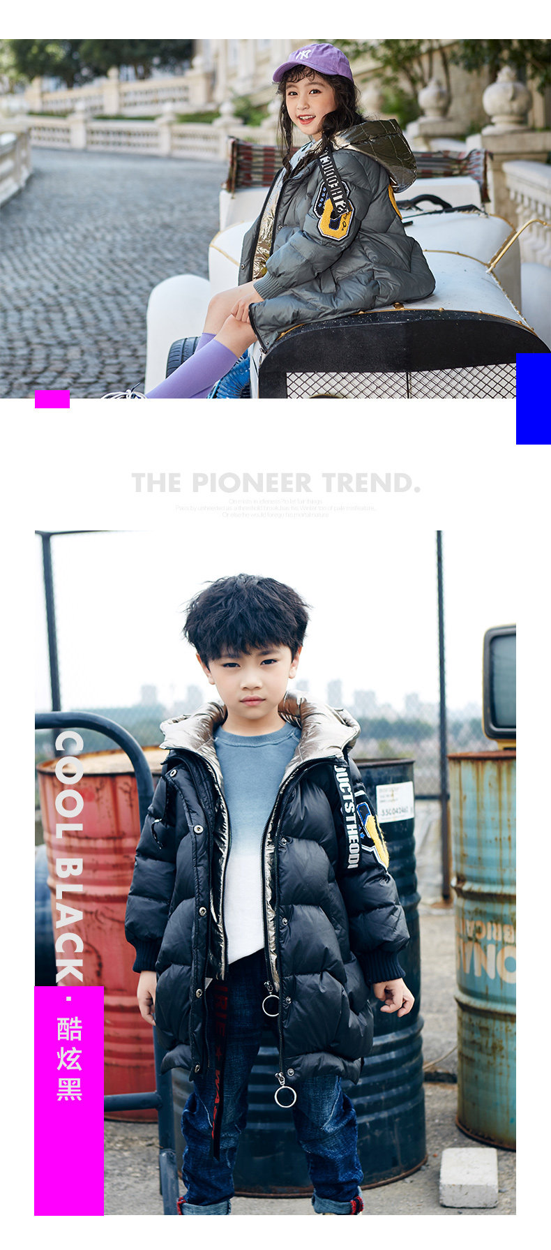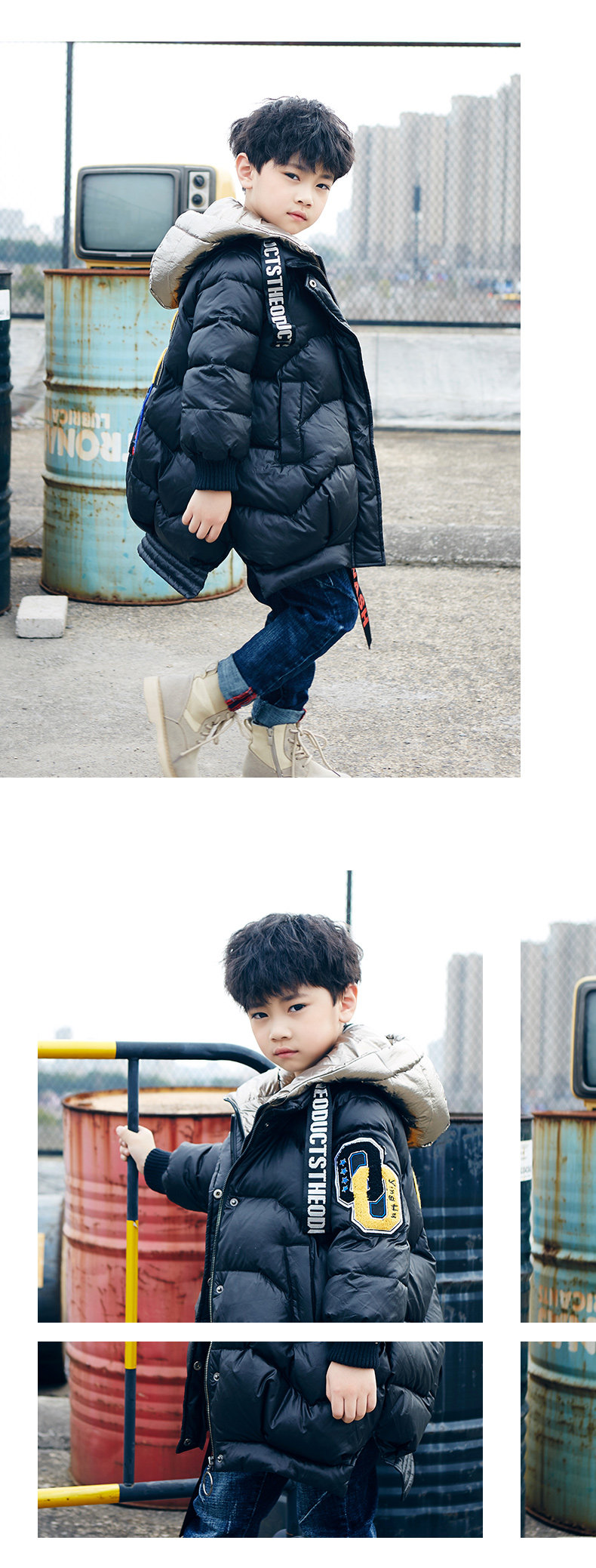 Детский комплект, пуховик, зимняя куртка с капюшоном, в западном стиле, увеличенная толщина, подходит для подростков