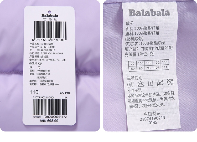 巴拉巴拉 Детский пуховик, демисезонная детская куртка, в западном стиле, детская одежда