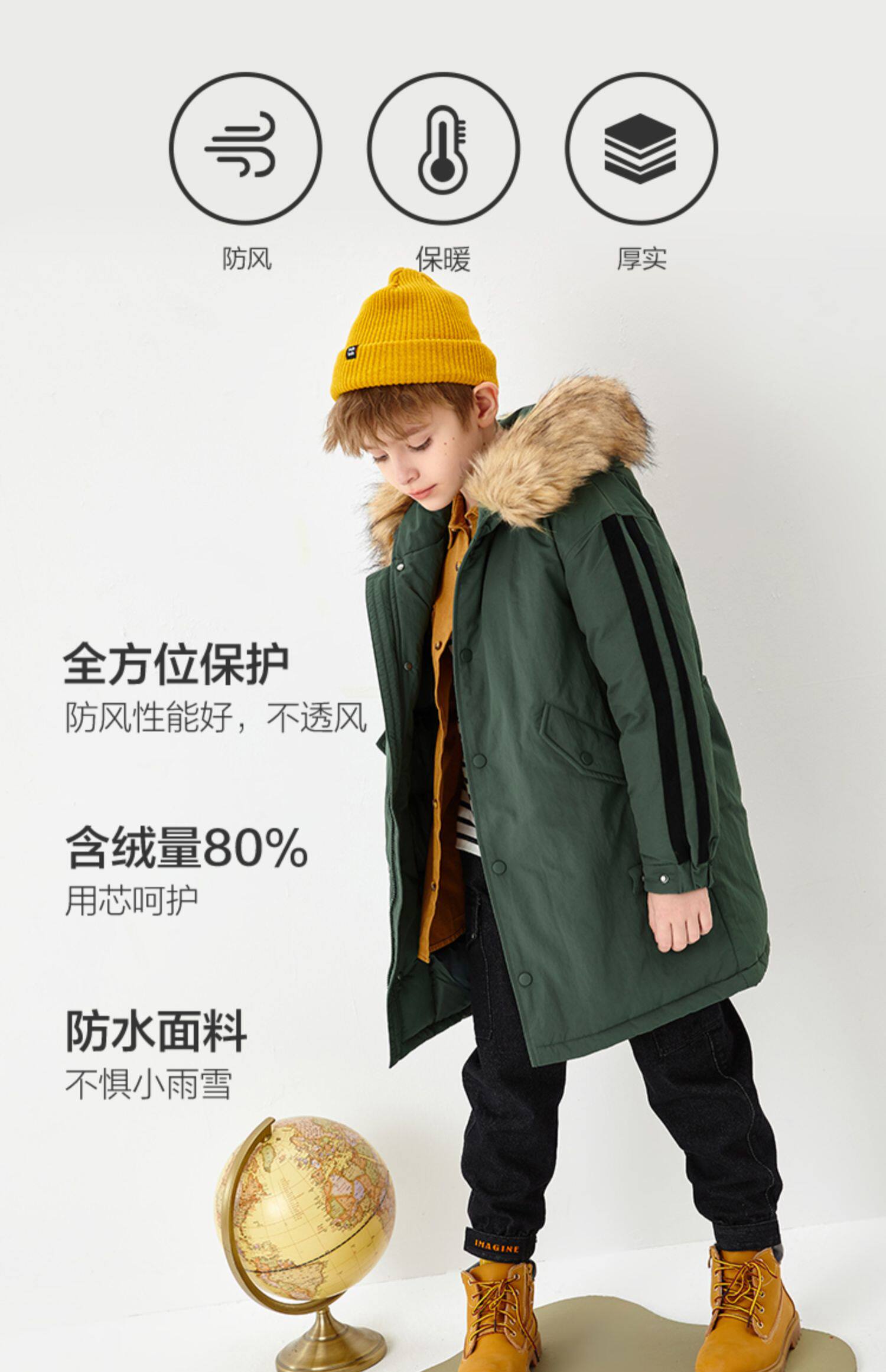 巴拉巴拉 Детский пуховик, костюм мальчика цветочника, утепленная длинная куртка для мальчиков, детская одежда, подходит для подростков, средней длины