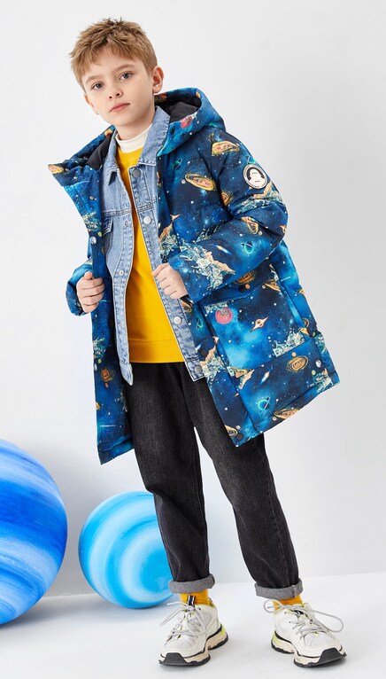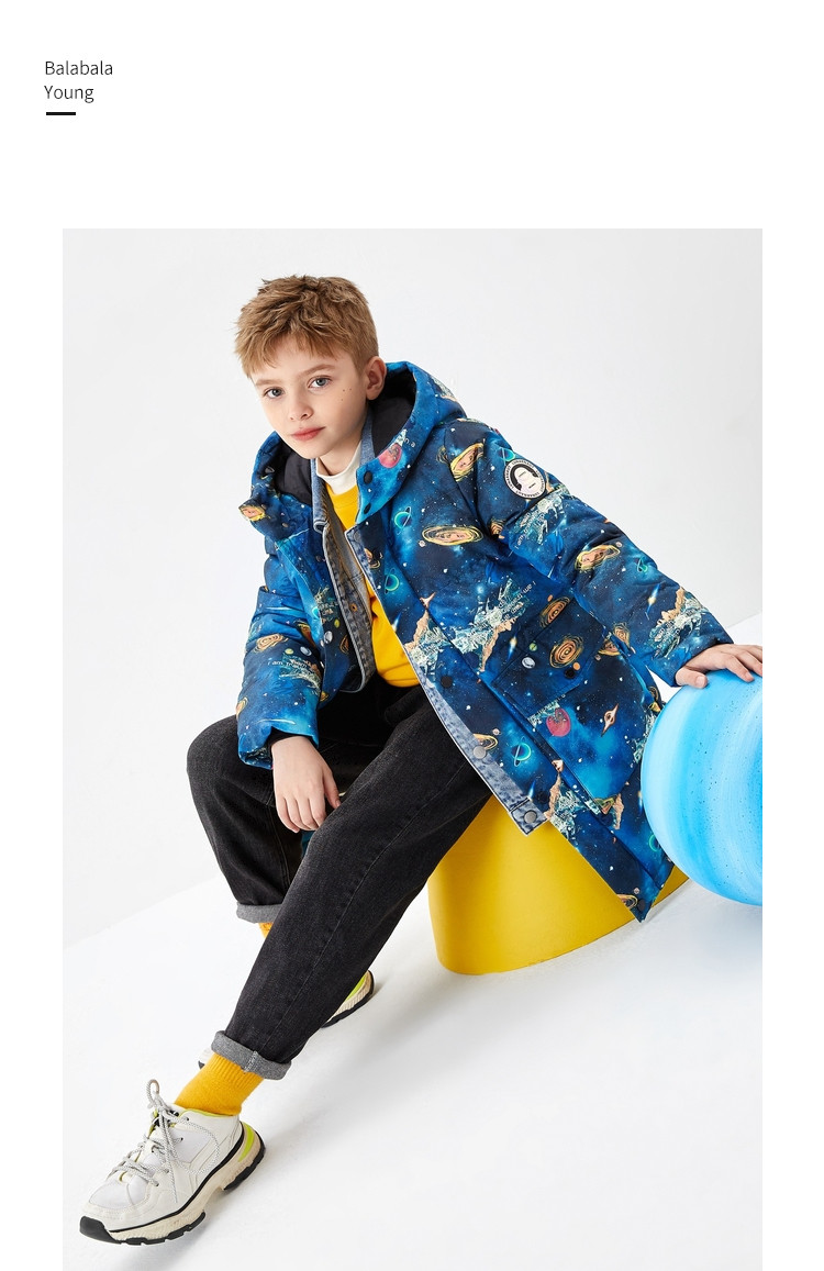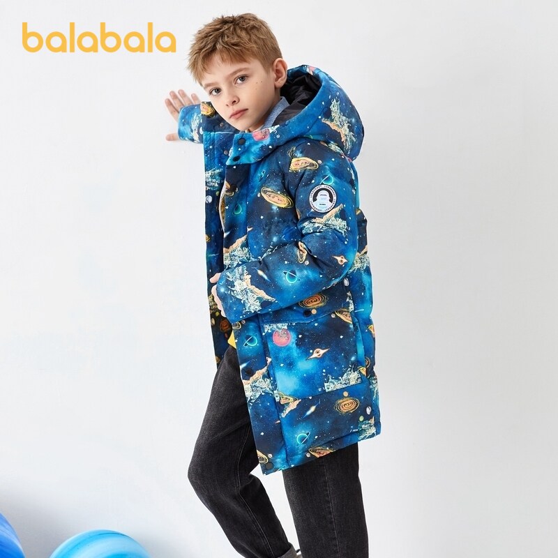 巴拉巴拉 Детский пуховик, костюм мальчика цветочника, длинная зимняя форма для мальчиков, куртка, в западном стиле, средней длины, детская одежда, подходит для подростков