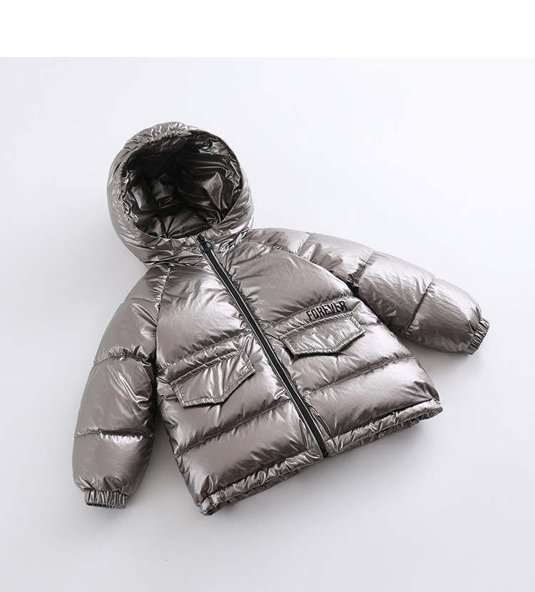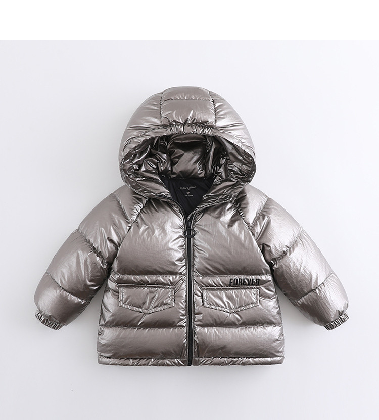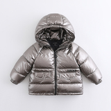 Детский пуховик подходит для мужчин и женщин, удерживающая тепло глянцевая металлическая детская куртка