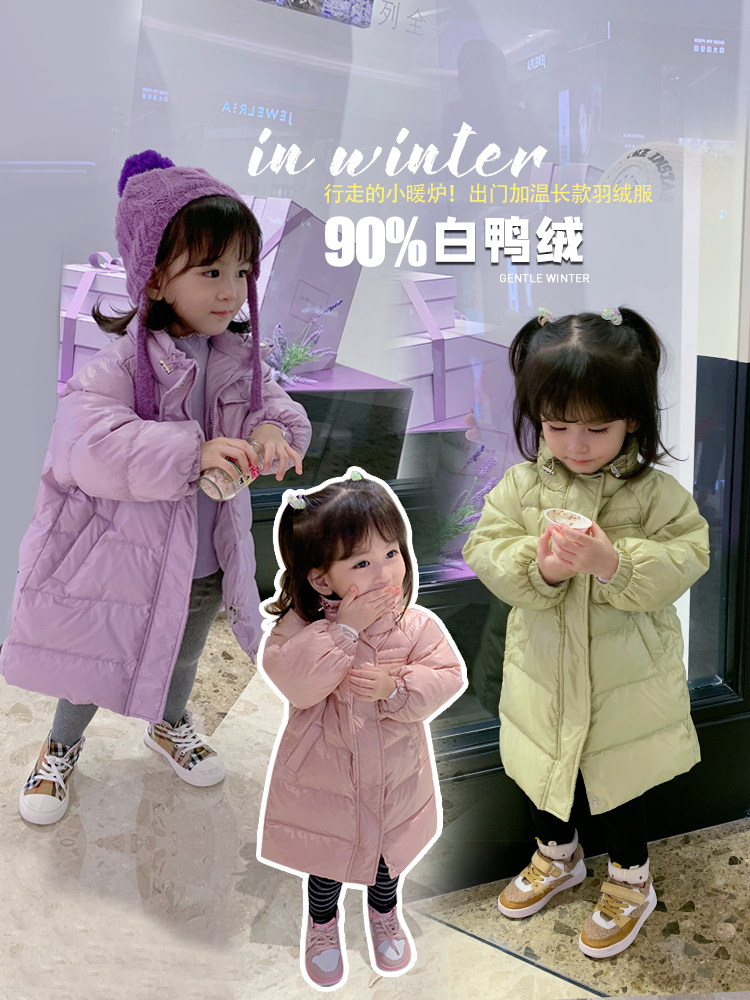 Детский пуховик, длинная бархатная куртка, 2020, в западном стиле, средней длины, утиный пух