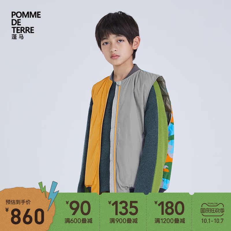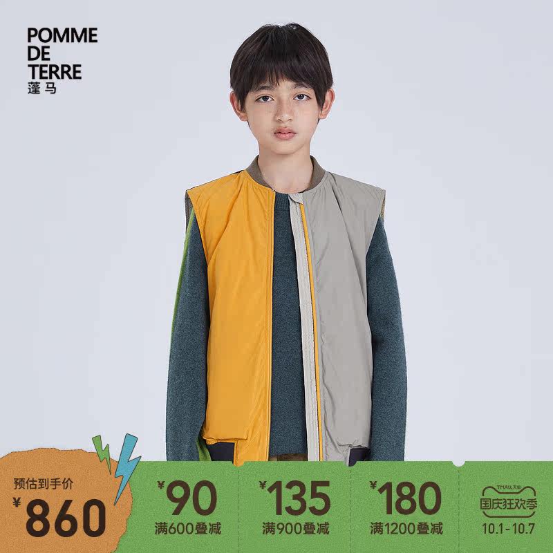 Pomme Pongma Детская одежда осень и зимняя новая строчка контрастная нишевая белая утка вниз утка вниз куртка жилет Al8c02310