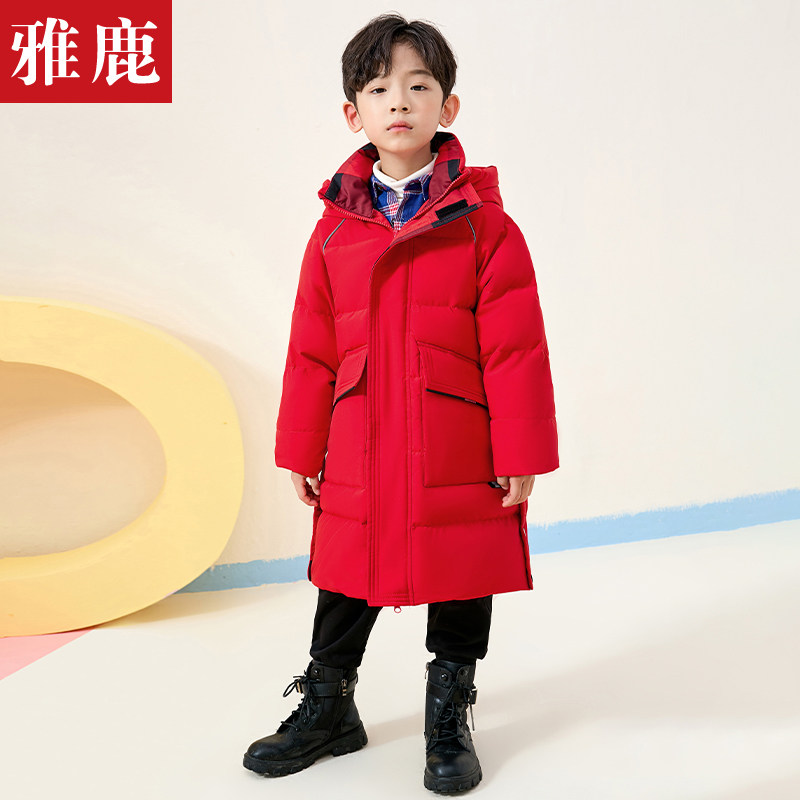 Детский зимний спортивный пуховик, трендовая длинная куртка для мальчиков, детская одежда, в западном стиле, средней длины