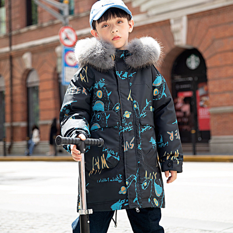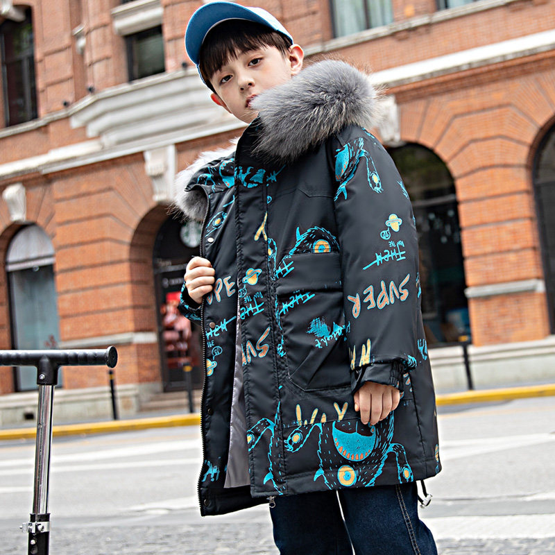 Детский пуховик, длинный костюм мальчика цветочника, зимняя куртка для мальчиков, средней длины, коллекция 2021, детская одежда, подходит для подростков, в западном стиле