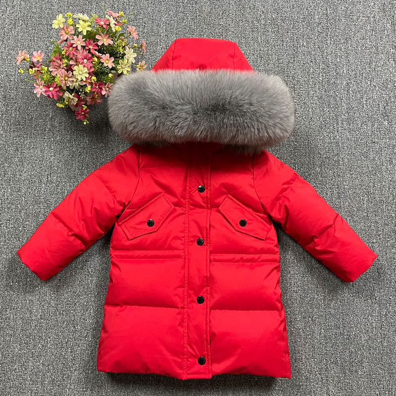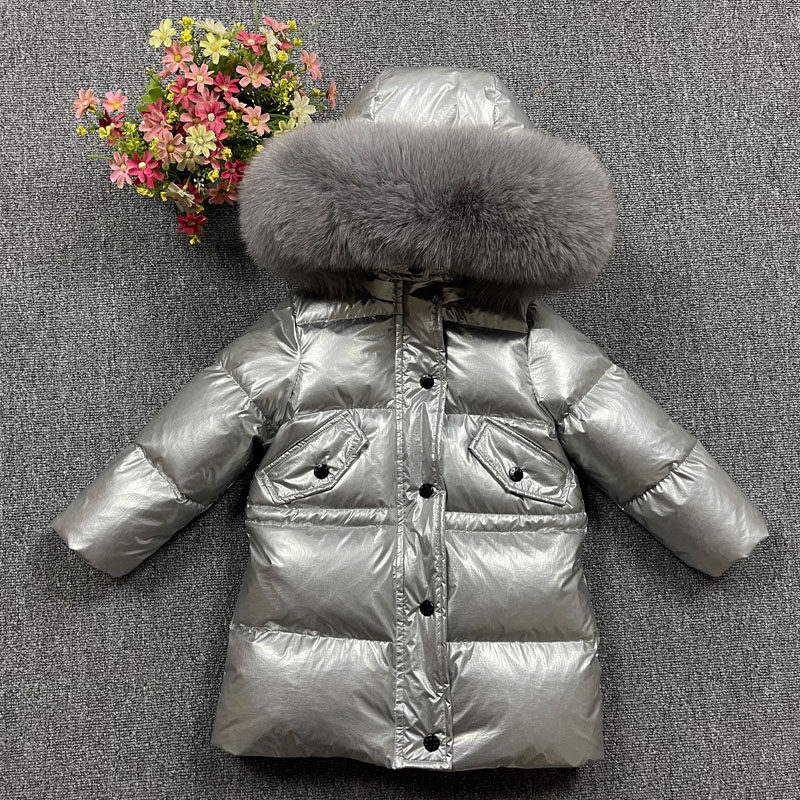 Бархатный детский длинный пуховик для мальчиков для девочек, утиный пух, средней длины, детская одежда