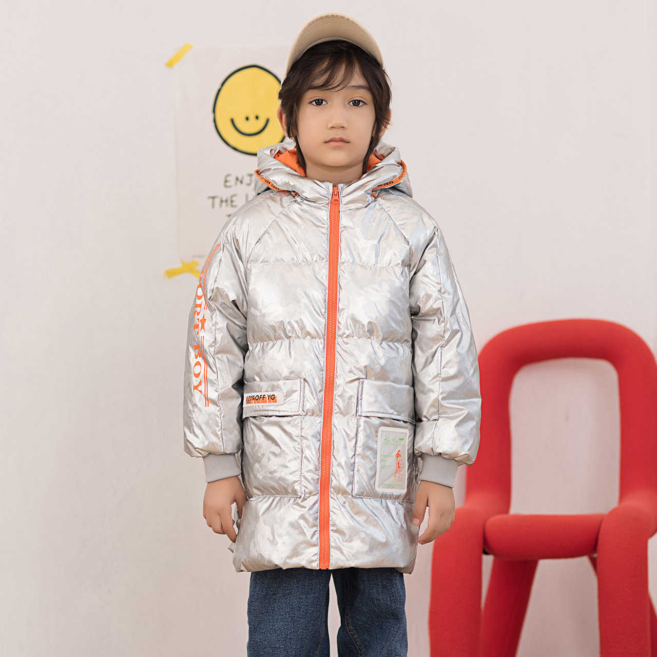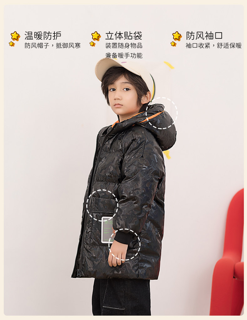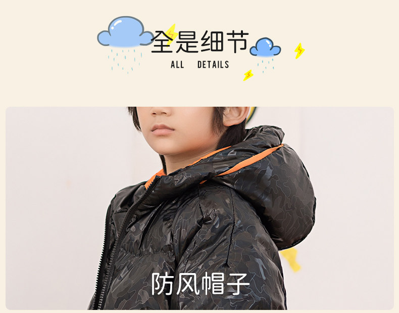 Демисезонный дизайнерский ветрозащитный детский пуховик для мальчиков для отдыха с капюшоном, принт