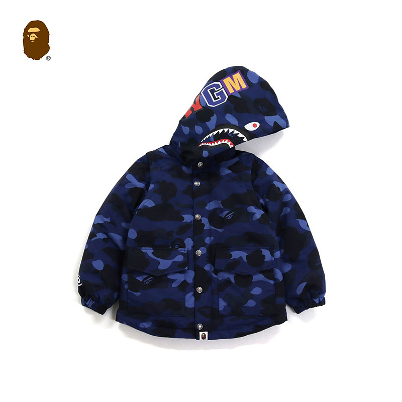 BAPE Осенняя демисезонная акула, камуфляжная раскраска, пуховик, детская одежда, принт