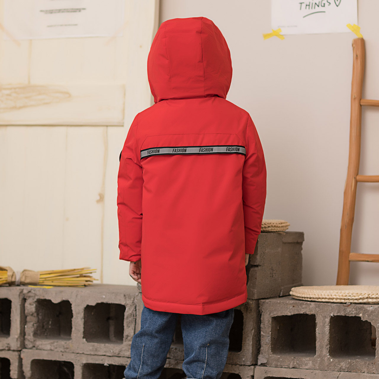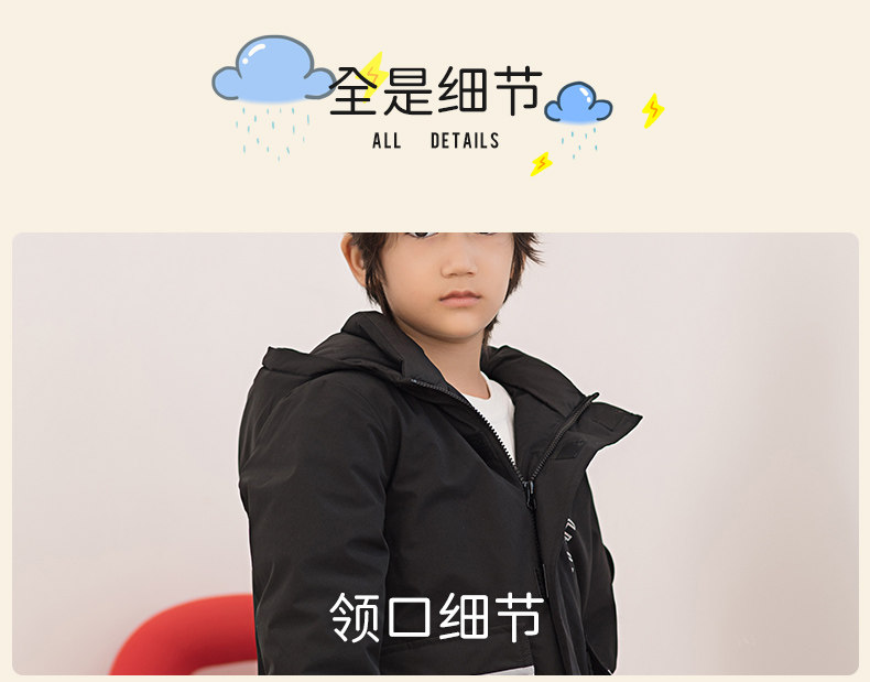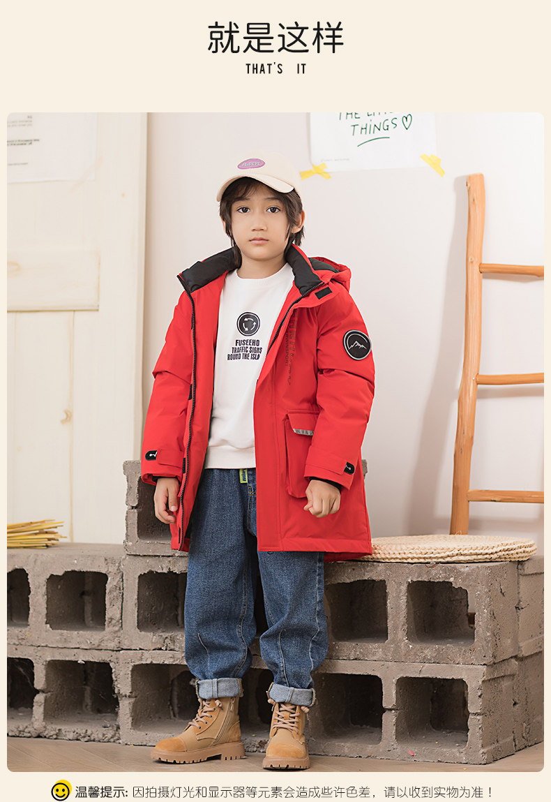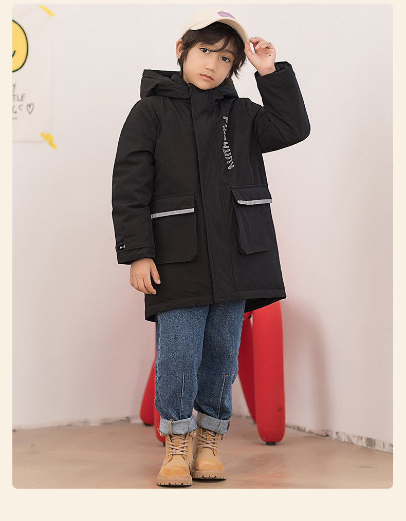 Демисезонный дизайнерский ветрозащитный детский пуховик для мальчиков для отдыха с капюшоном