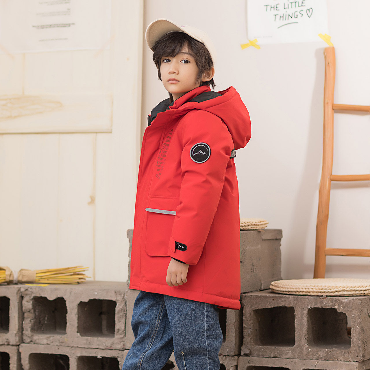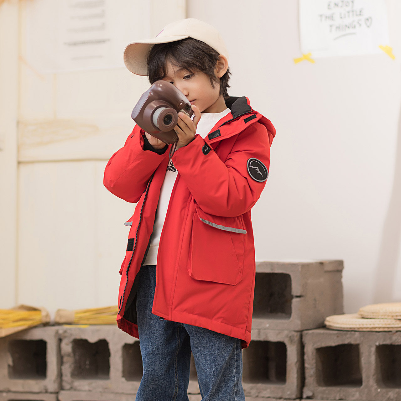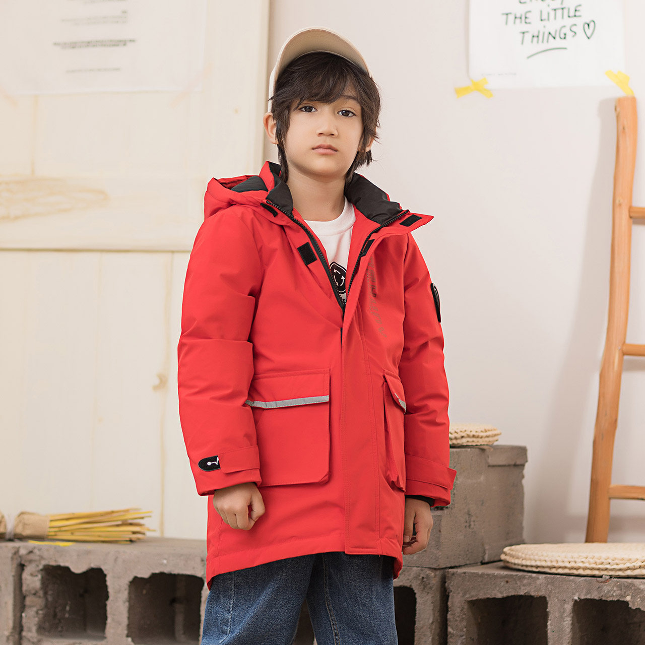 Демисезонный дизайнерский ветрозащитный детский пуховик для мальчиков для отдыха с капюшоном