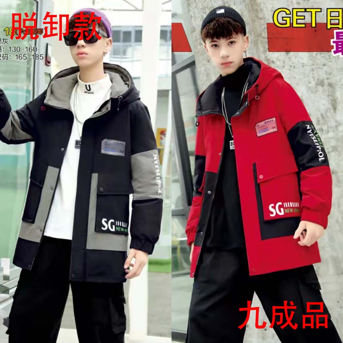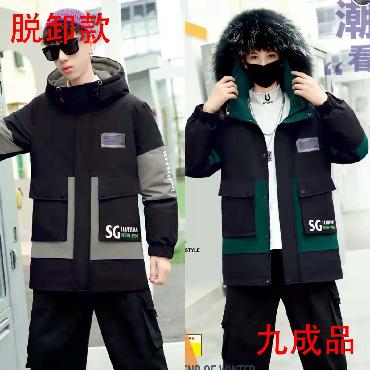 Мужская молодость в середине длины выключена вниз и разгрузка куртки девять девяти детей -пакеров Установленная лапша Полуфинансированный продукт 18 Реконструкция.