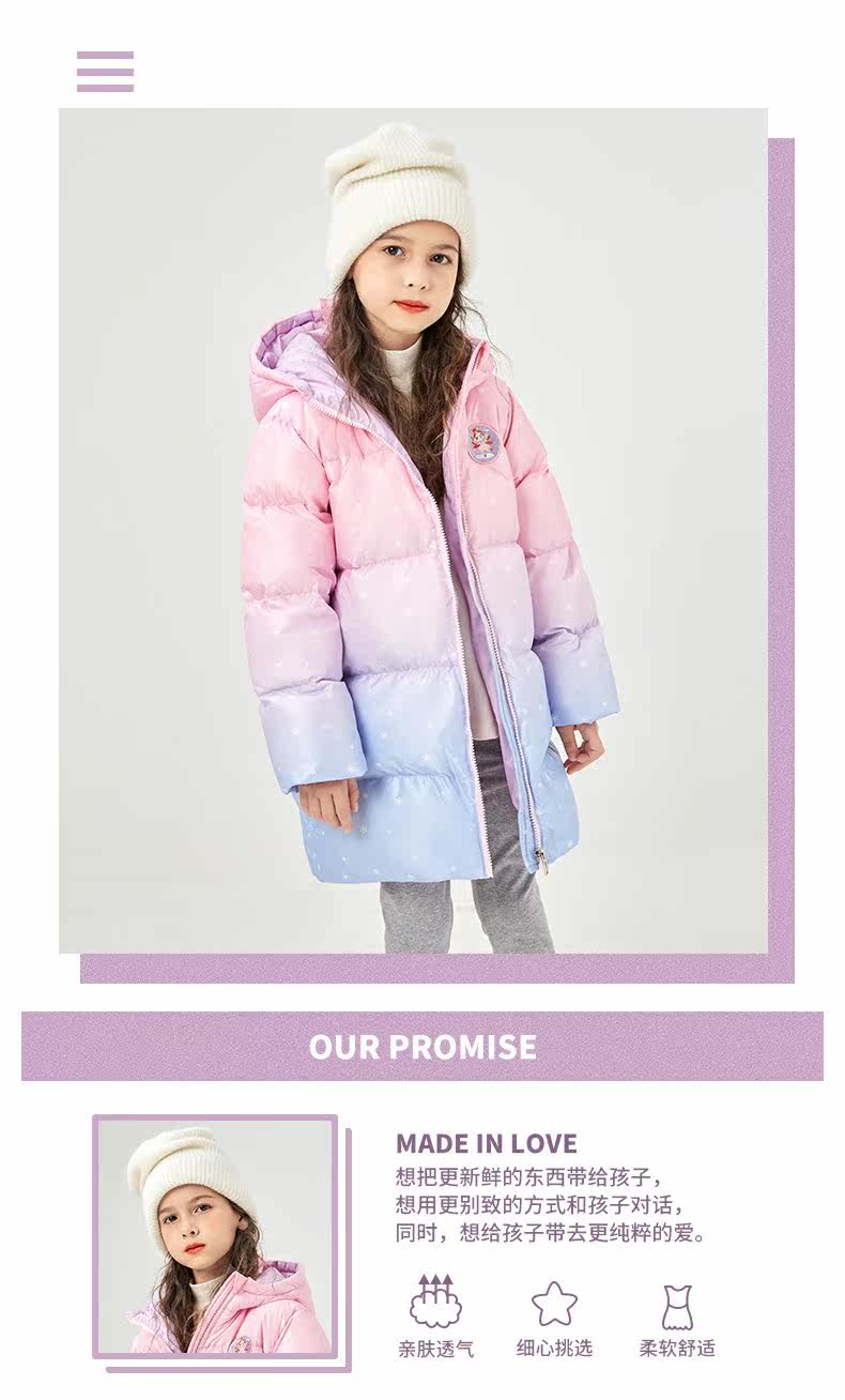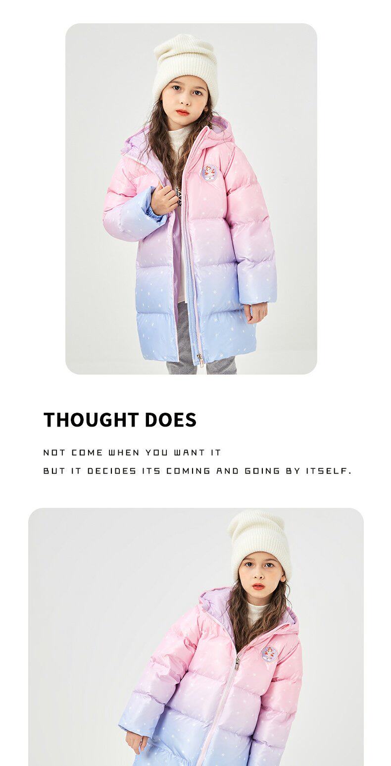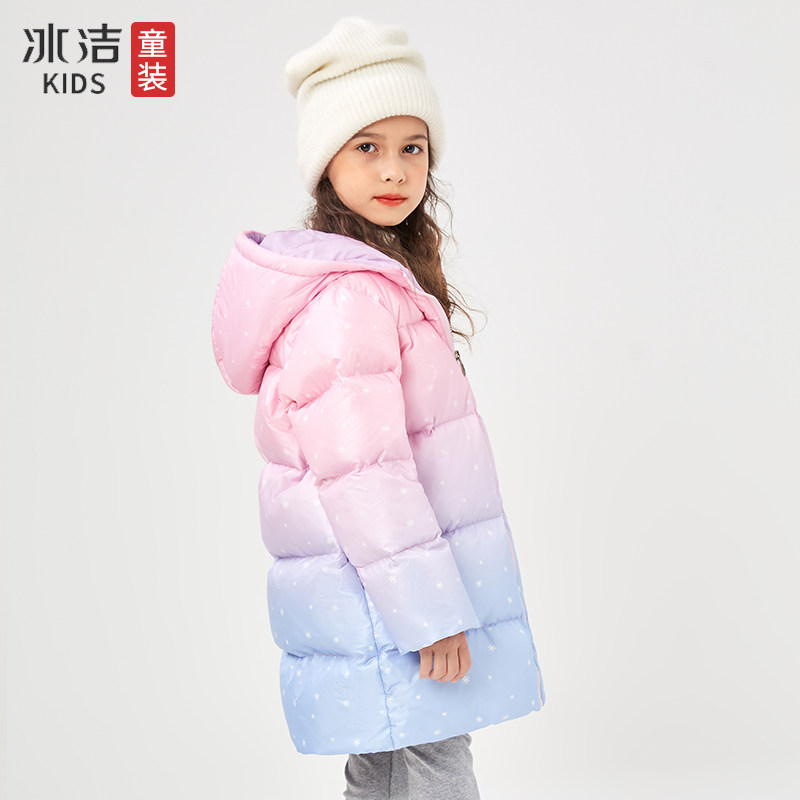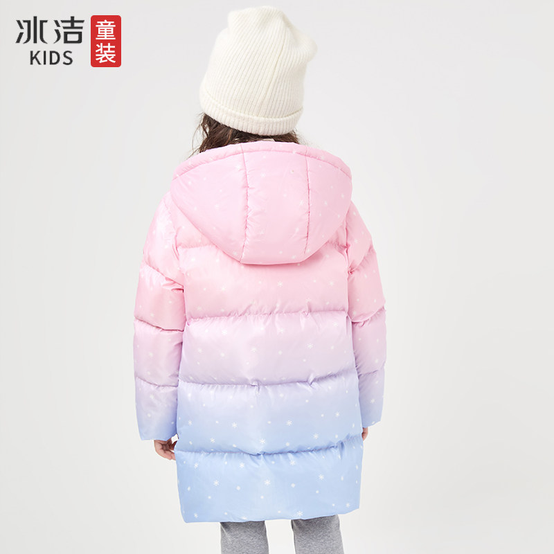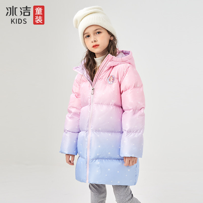 冰洁 Пуховик, зимний длинный наряд маленькой принцессы, куртка, средней длины, увеличенная толщина, подходит для подростков, градиент