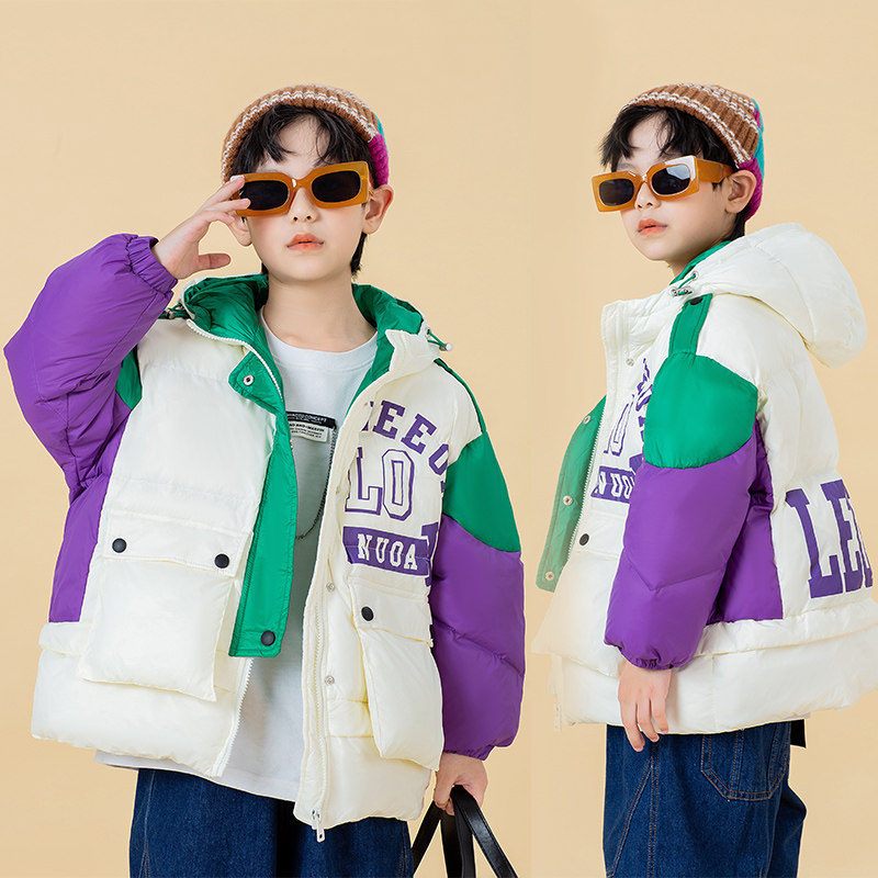 Зимний детский короткий пуховик для мальчиков, бархатная куртка, 2023, в корейском стиле, увеличенная толщина, в западном стиле, утиный пух