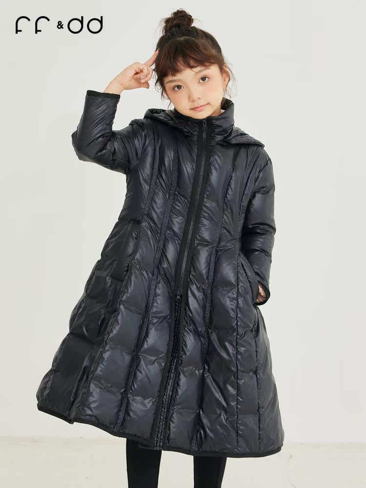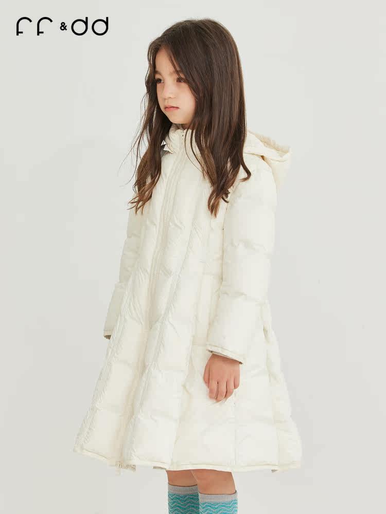 Зимний бежевый пуховик с капюшоном, длинная детская куртка, детская одежда, в западном стиле