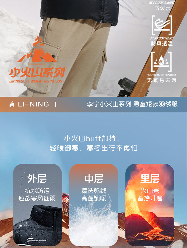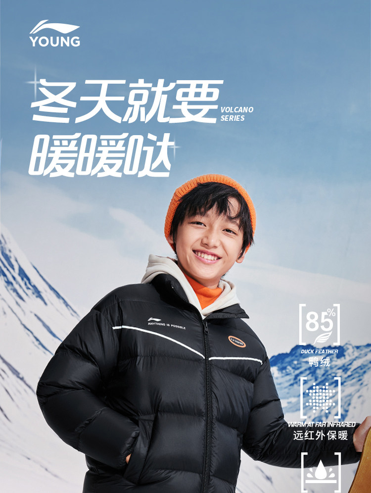 Li Ning, детский пуховик для мальчиков, демисезонная куртка, детская одежда, подходит для подростков