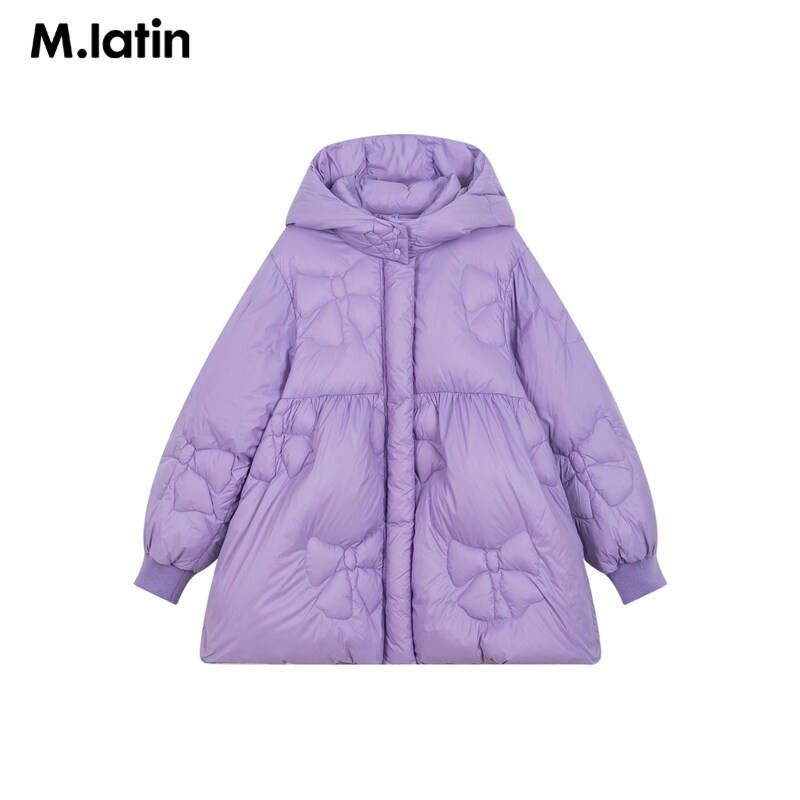 Детская зимняя куртка, пуховик с бантиком, детская одежда, подходит для подростков, длина миди