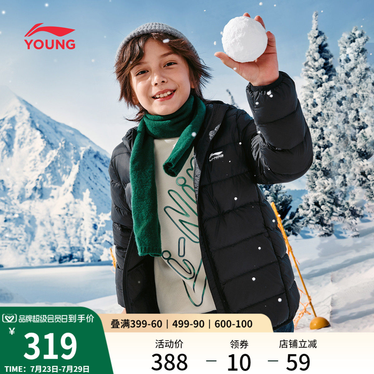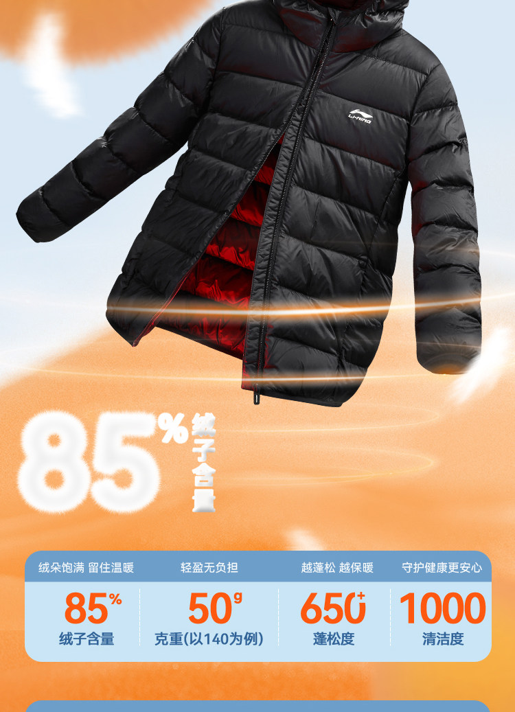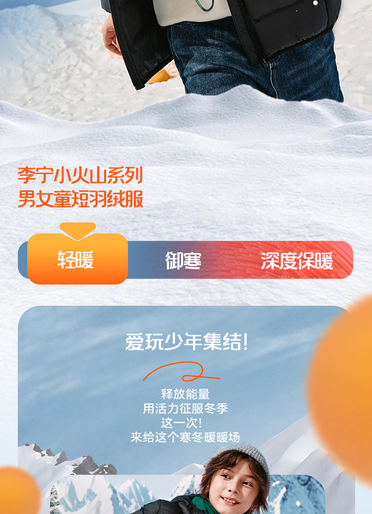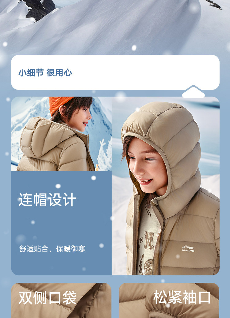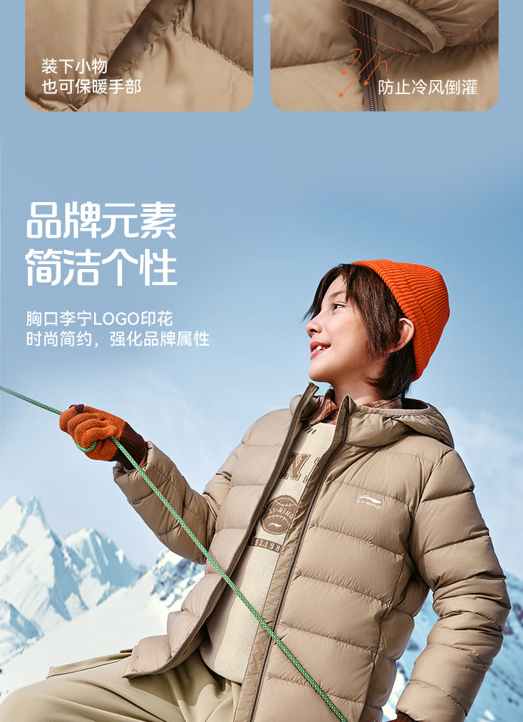 Li Ning, короткий спортивный пуховик с капюшоном, детская одежда, подходит для подростков
