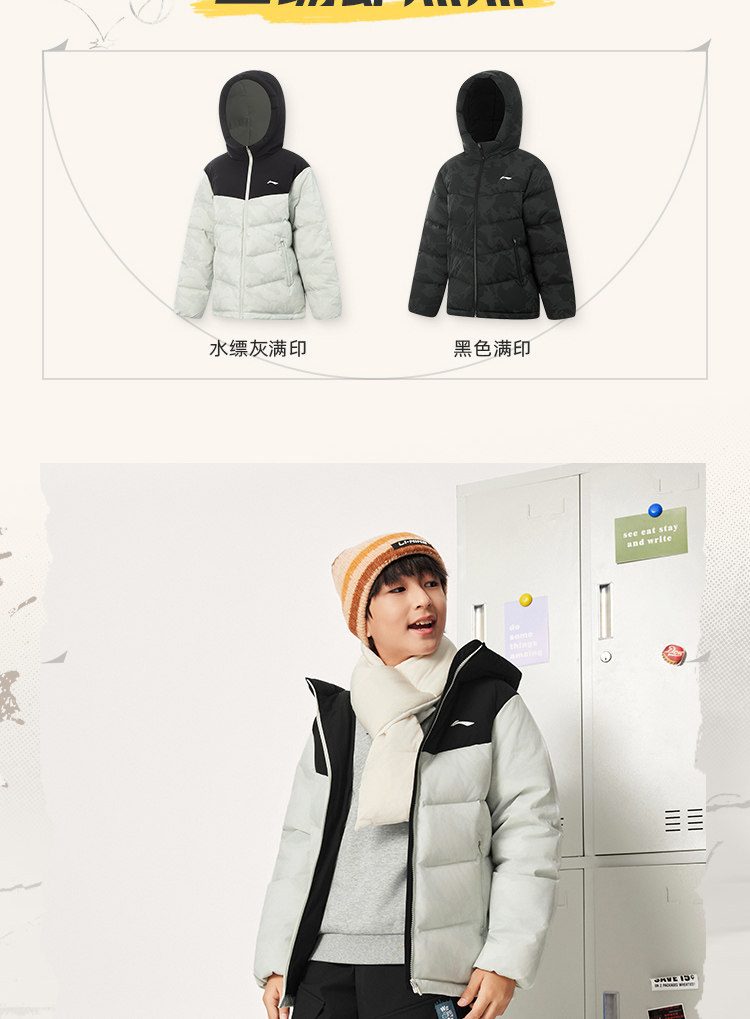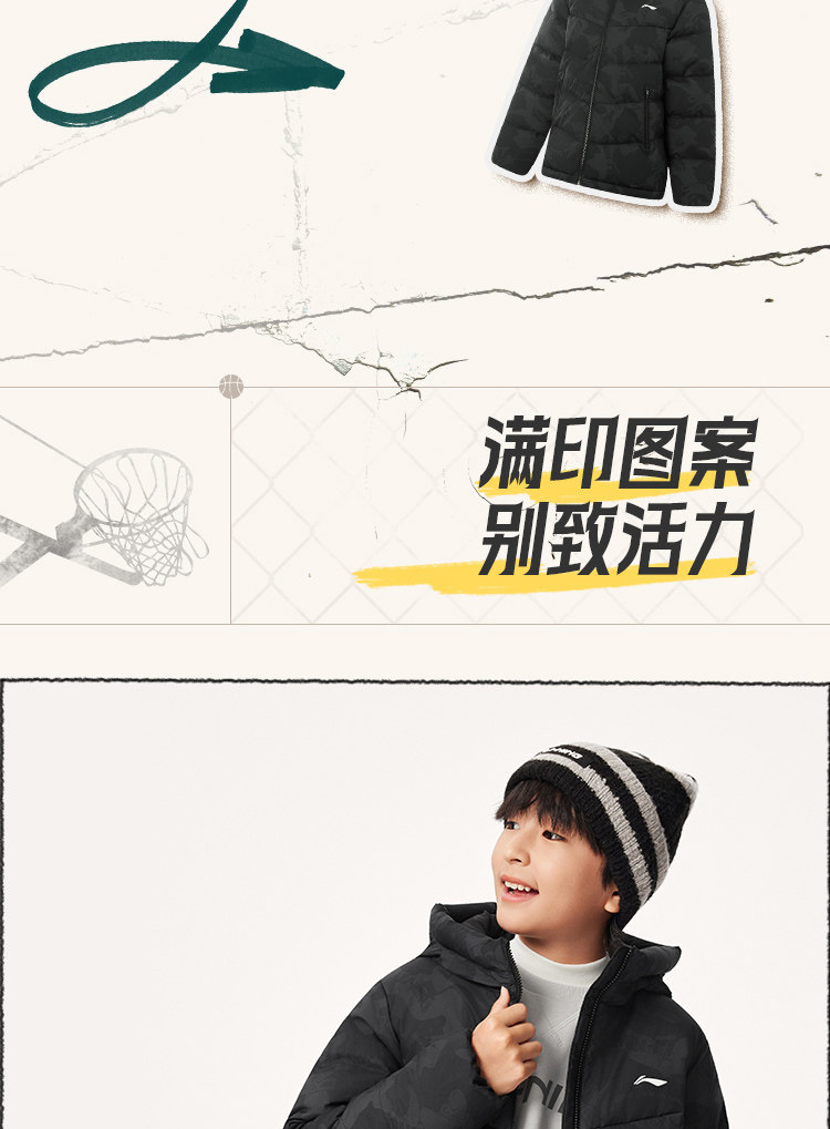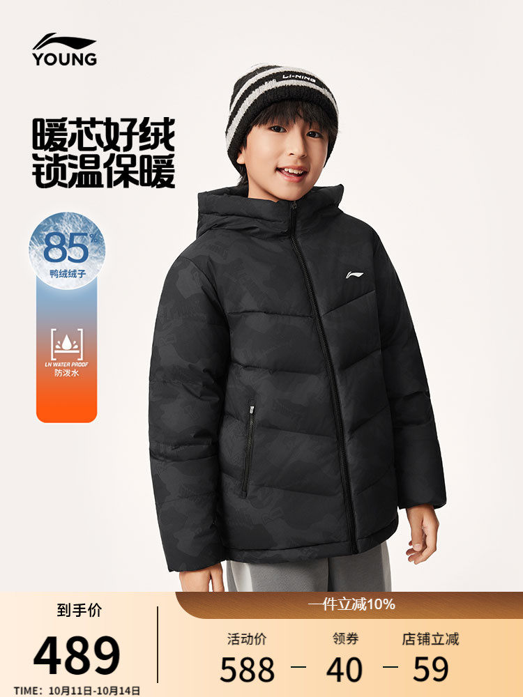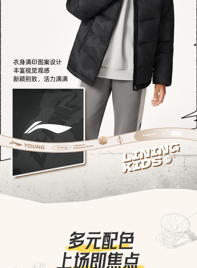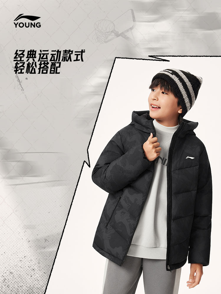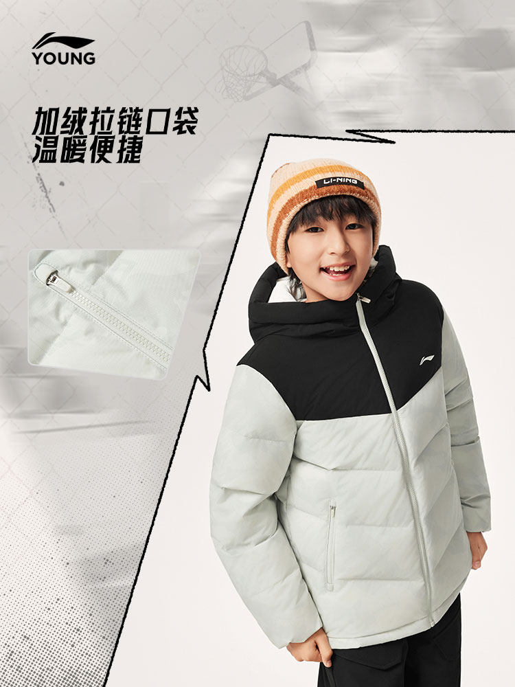 Li Ning, пуховик, баскетбольная зимняя бархатная толстовка с капюшоном, детская одежда, подходит для подростков, утиный пух