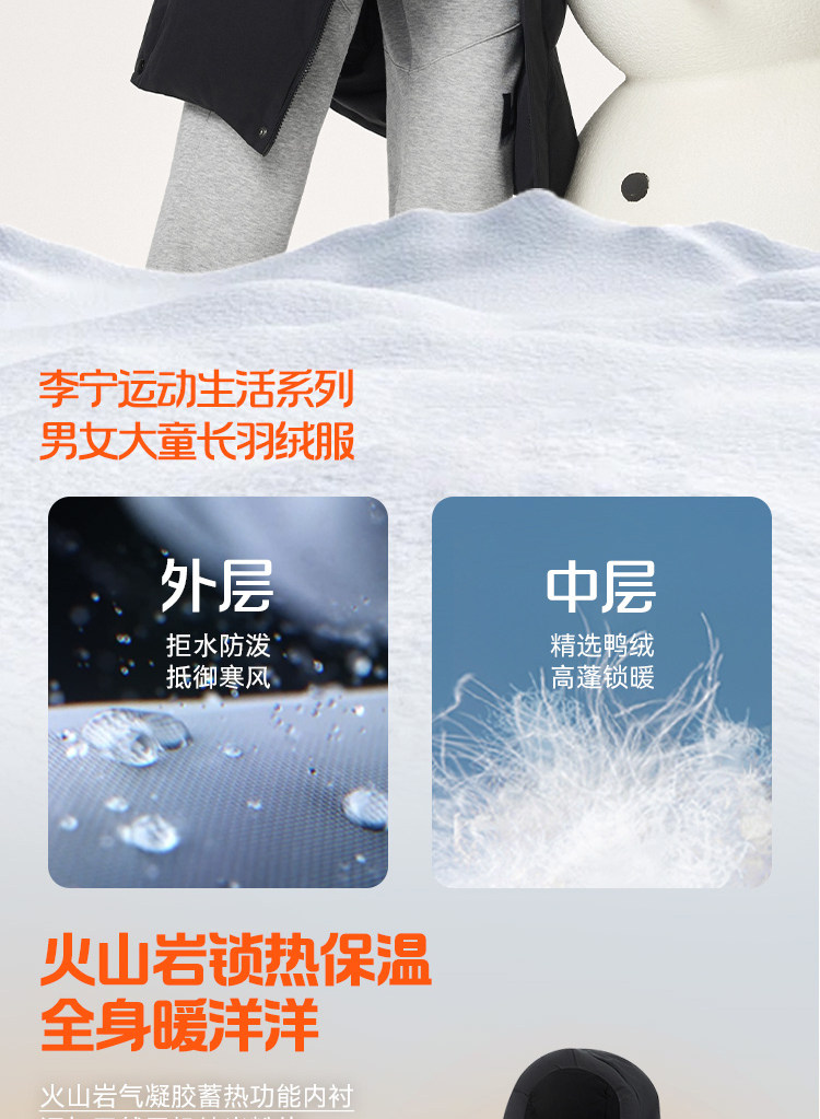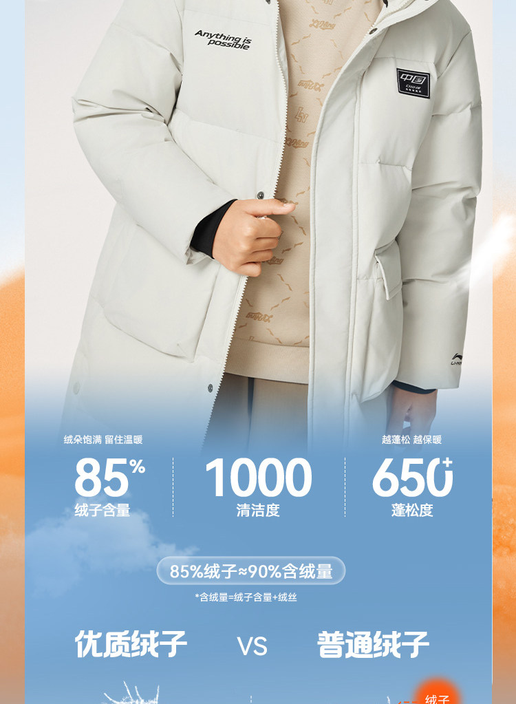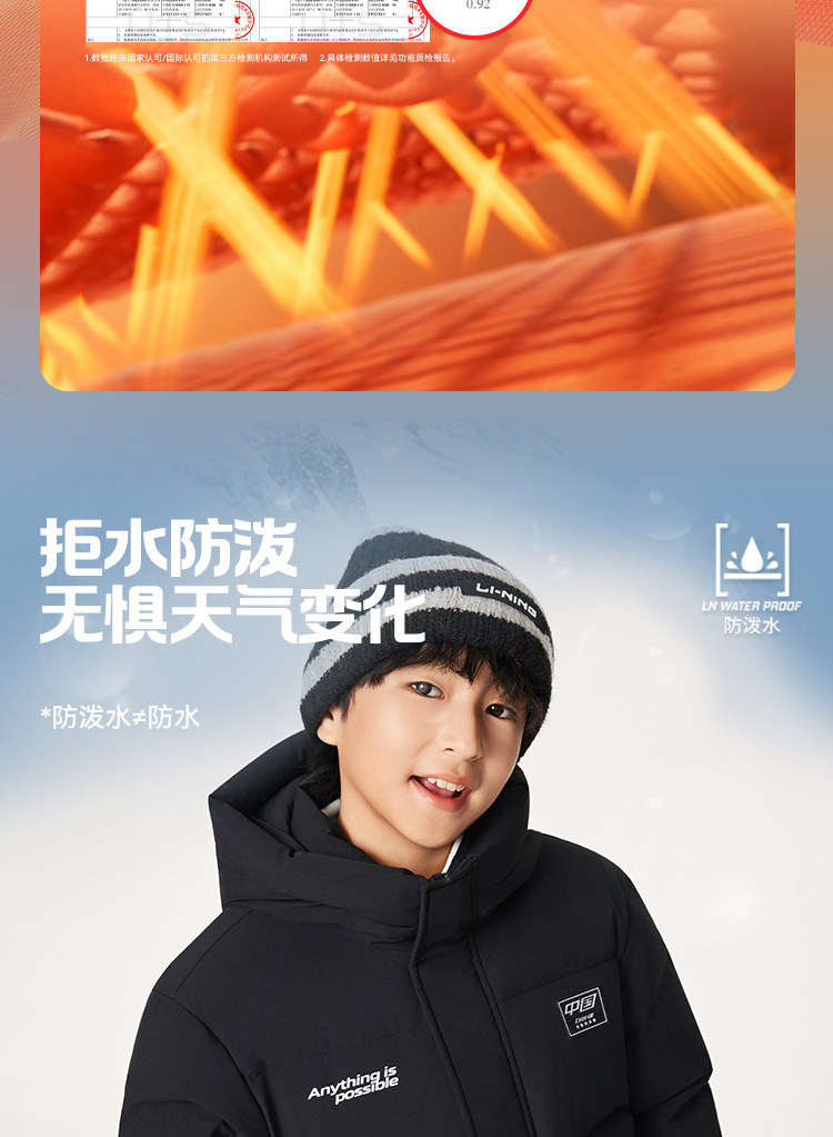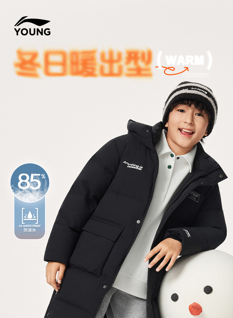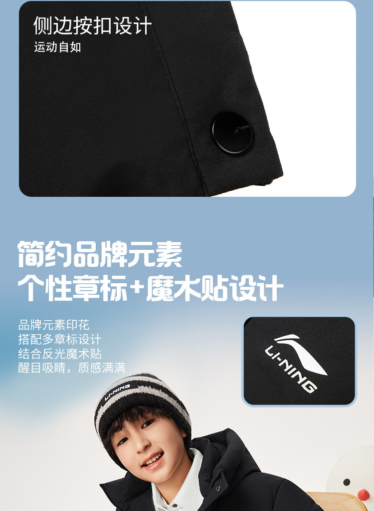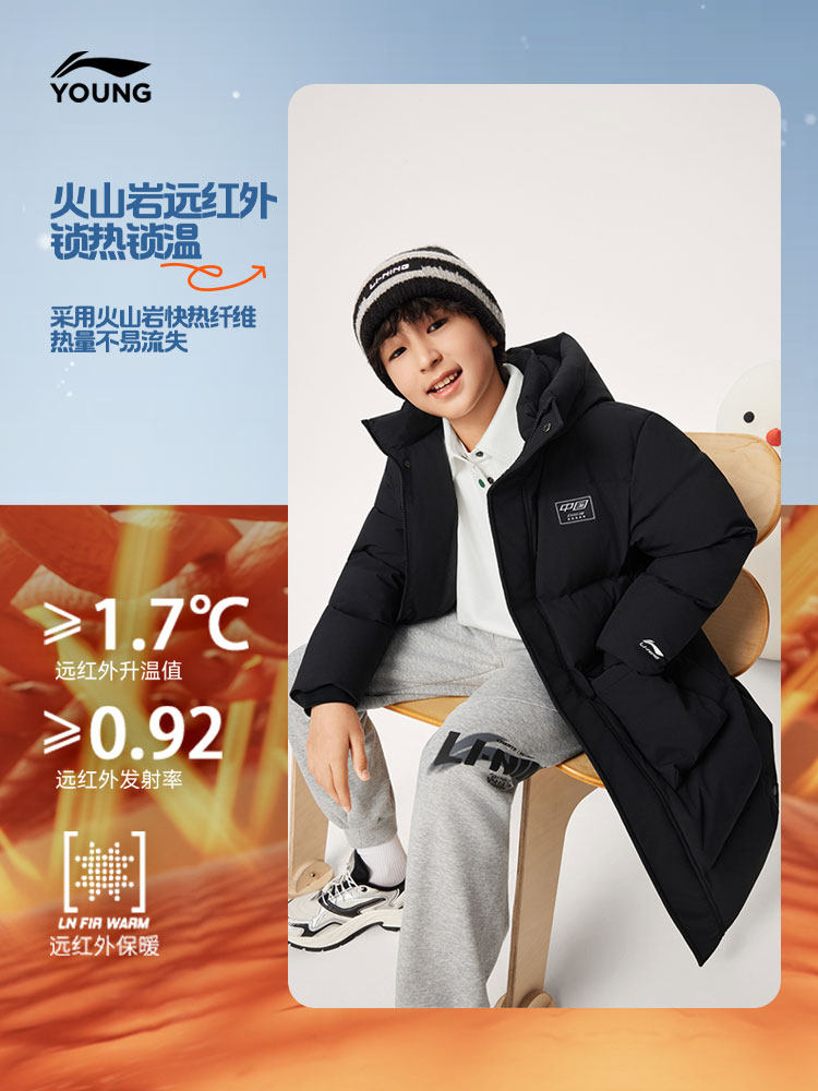 Li Ning, спортивный зимний светоотражающий бархатный пуховик, детская одежда, подходит для подростков, утиный пух