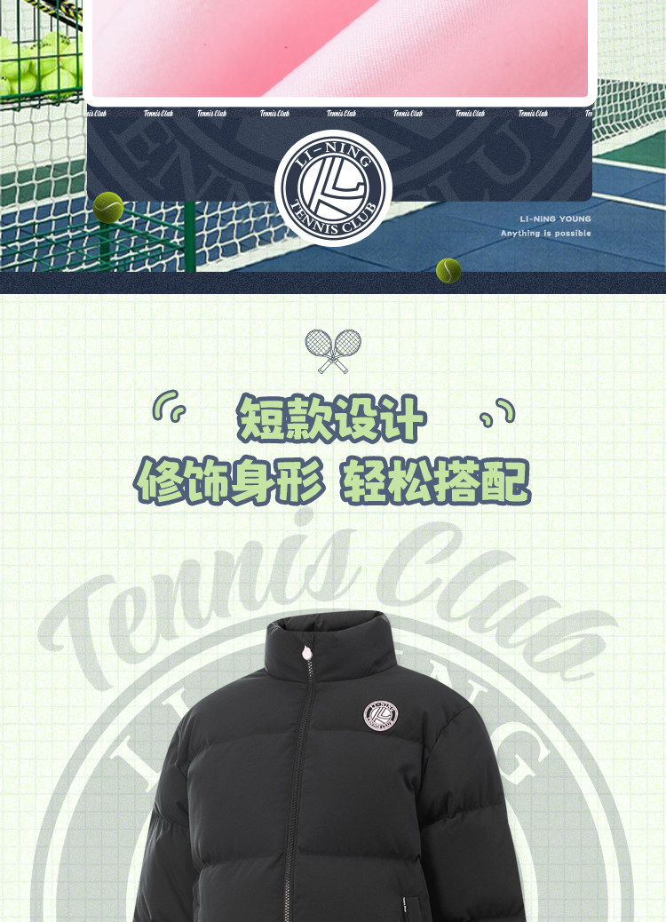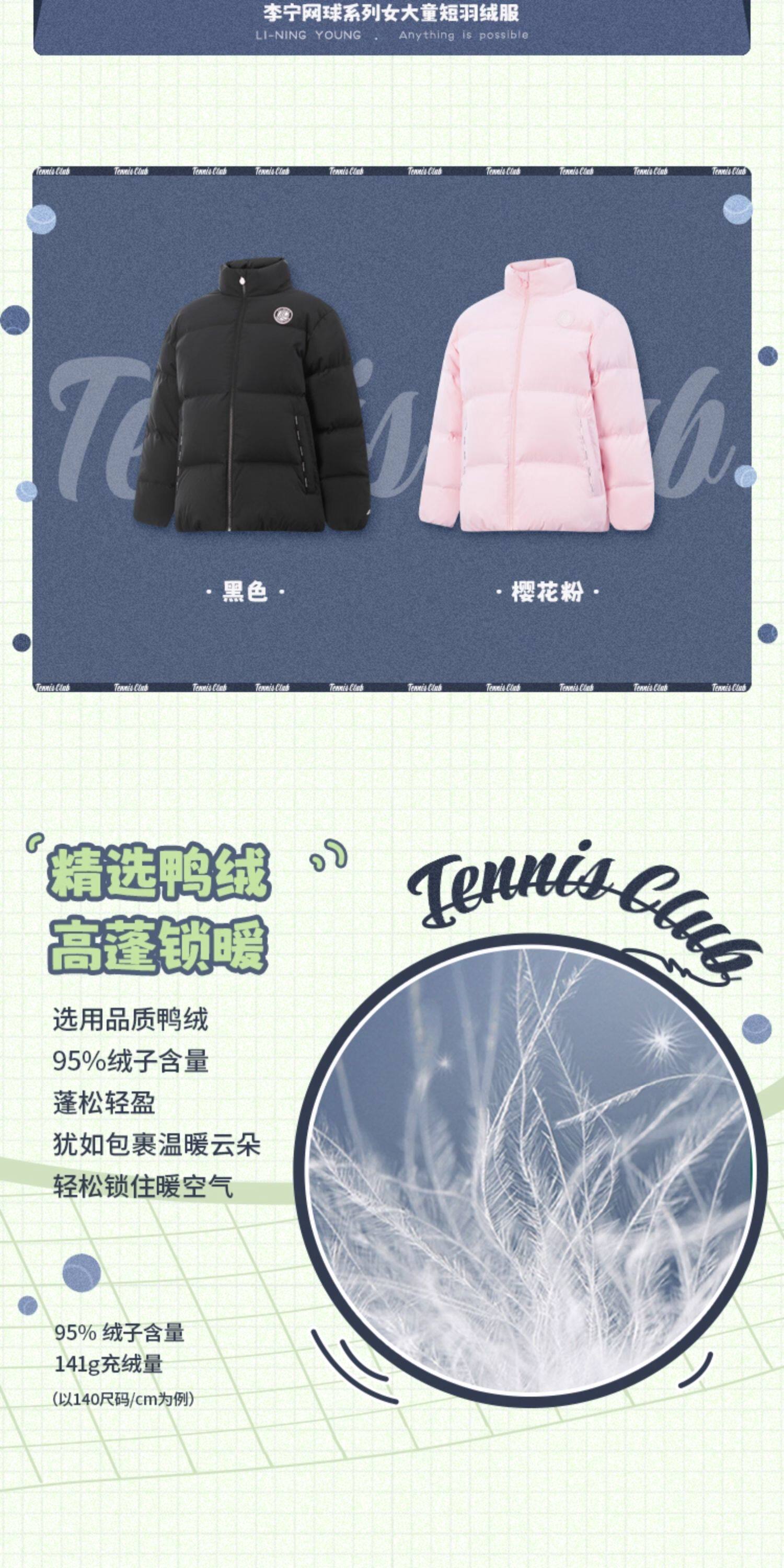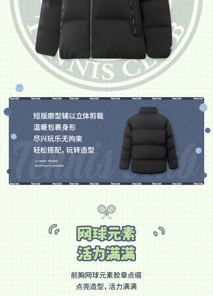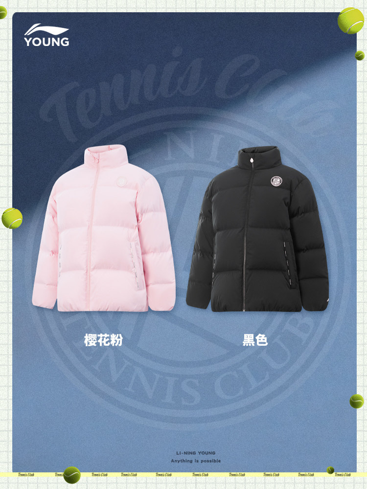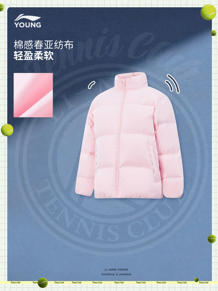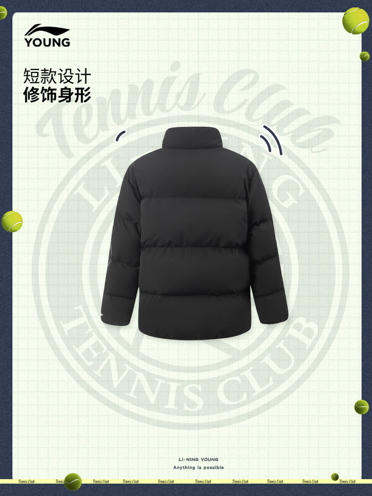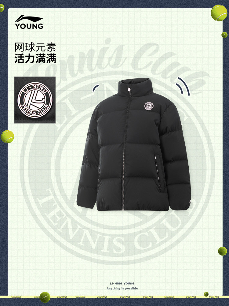 Li Ning, короткий теннисный зимний бархатный пуховик, детская одежда, подходит для подростков, свободный крой, утиный пух