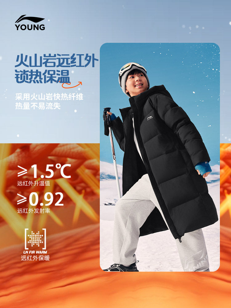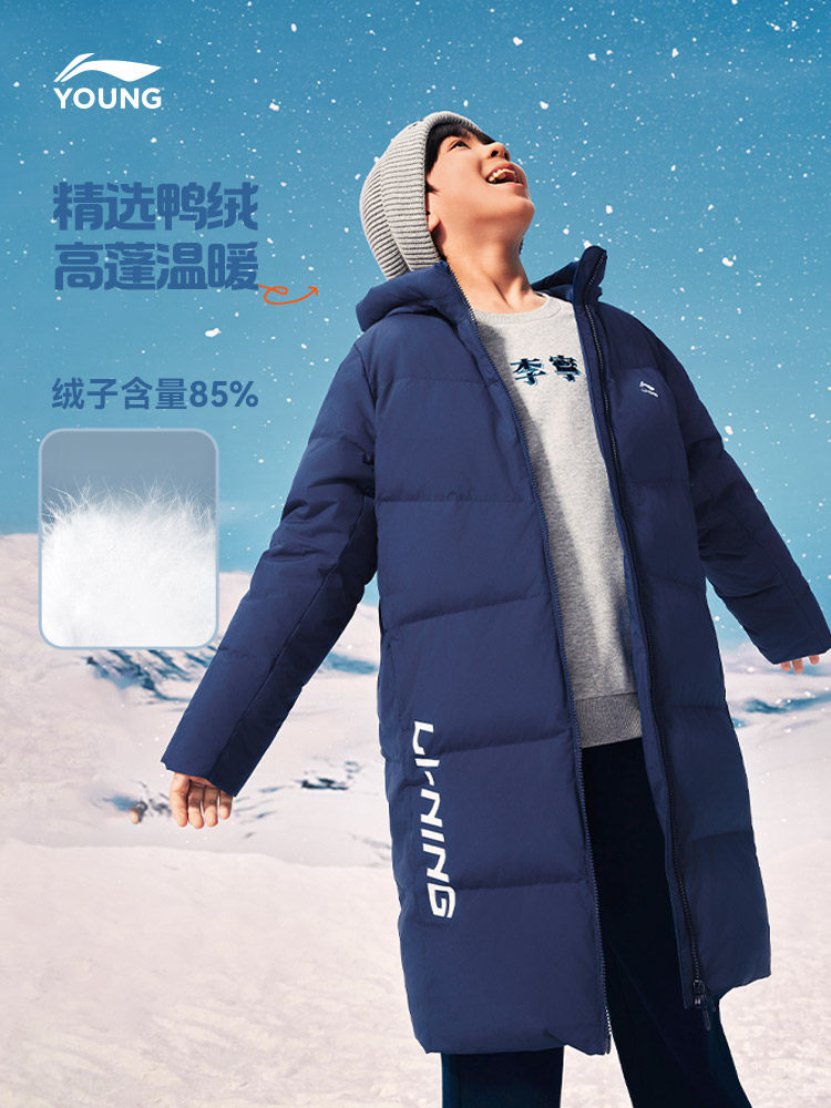Li Ning, спортивный удерживающий тепло зимний бархатный пуховик, детская одежда, подходит для подростков, утиный пух