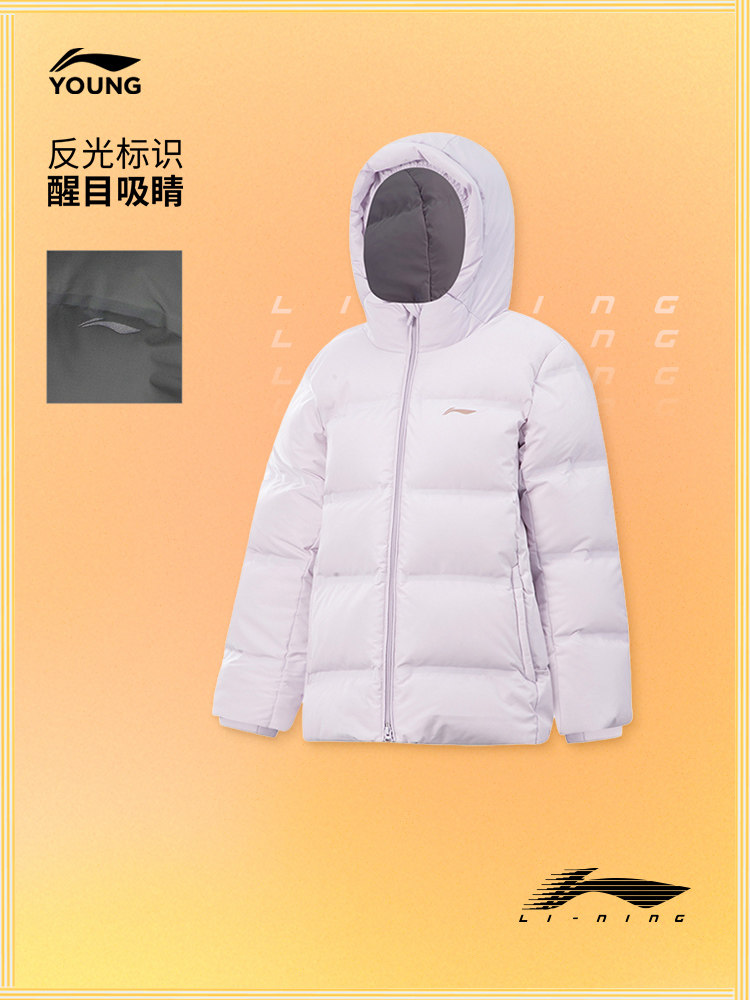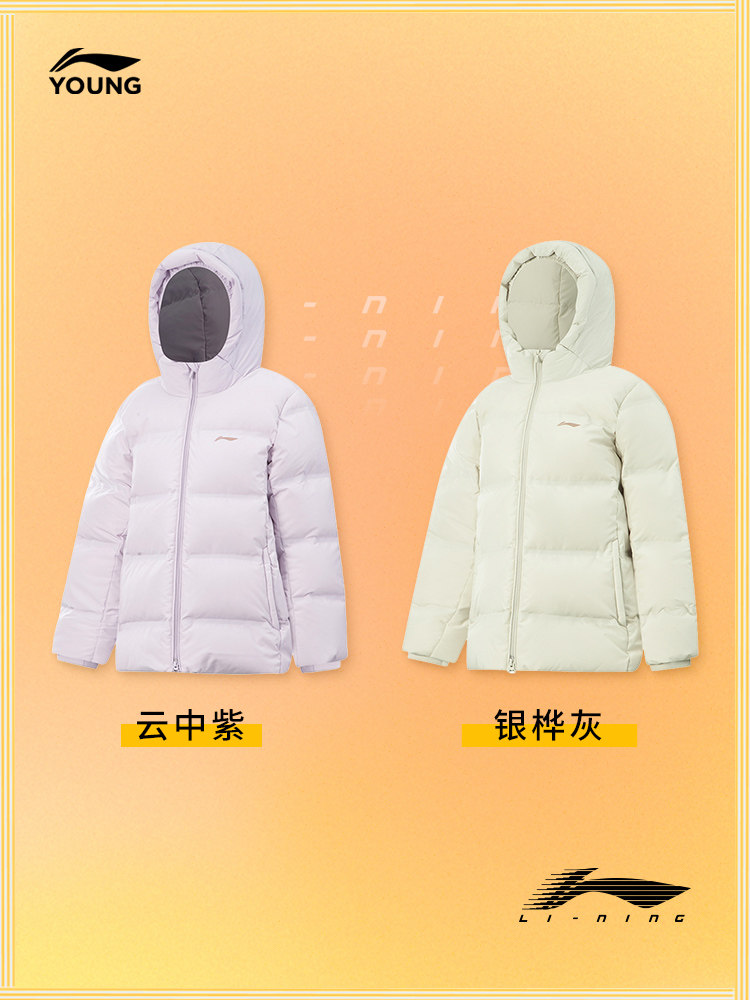 Li Ning, длинный комплексный комбинированный зимний бархатный пуховик, детская одежда, средней длины, подходит для подростков, утиный пух