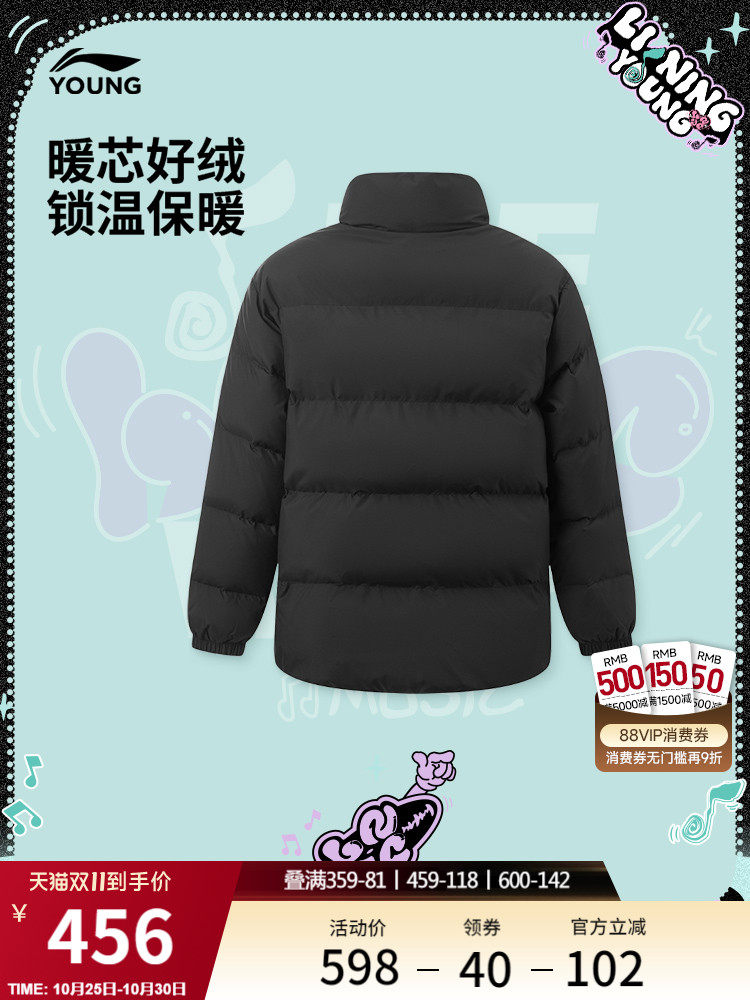 Li Ning, спортивный зимний бархатный пуховик для отдыха, детская одежда, подходит для подростков, утиный пух