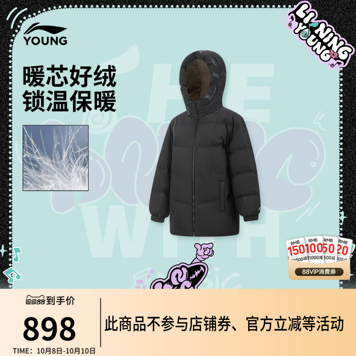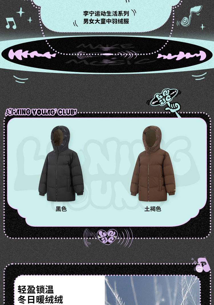 Li Ning, спортивный зимний бархатный пуховик, детская одежда, подходит для подростков, утиный пух
