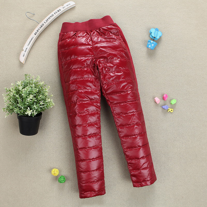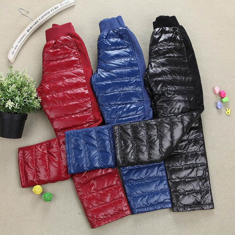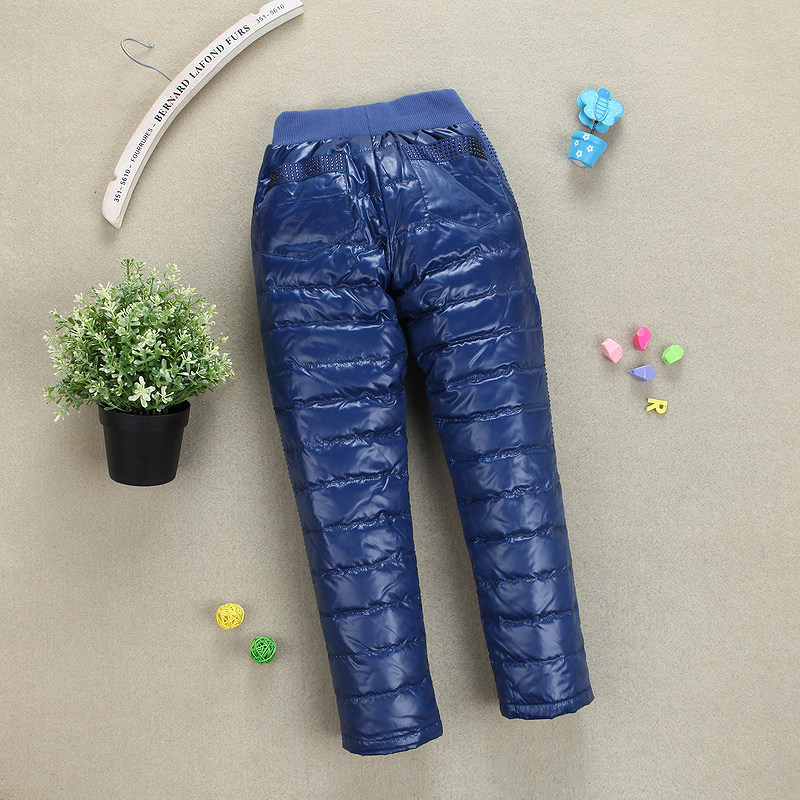 Зимние детские бархатные удерживающие тепло штаны с пухом, высокая талия, утиный пух