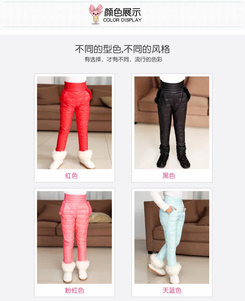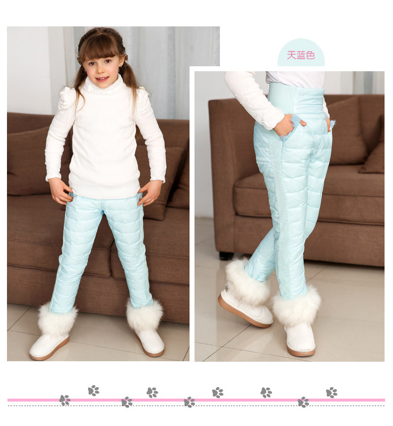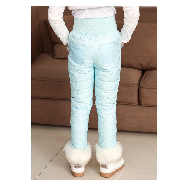 Зимние детские удерживающие тепло штаны с пухом, детская одежда, высокая талия, увеличенная толщина