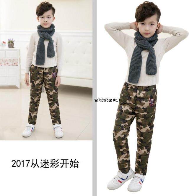 Зимние детские утепленные камуфляжные базовые штаны с пухом для мальчиков, детская одежда