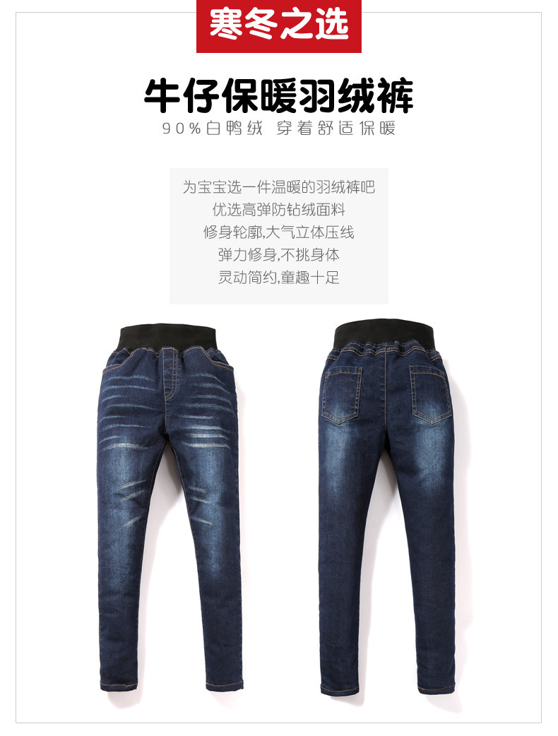 Штаны с пухом, удерживающие тепло детские зимние джинсы, высокая талия, подходит для подростков